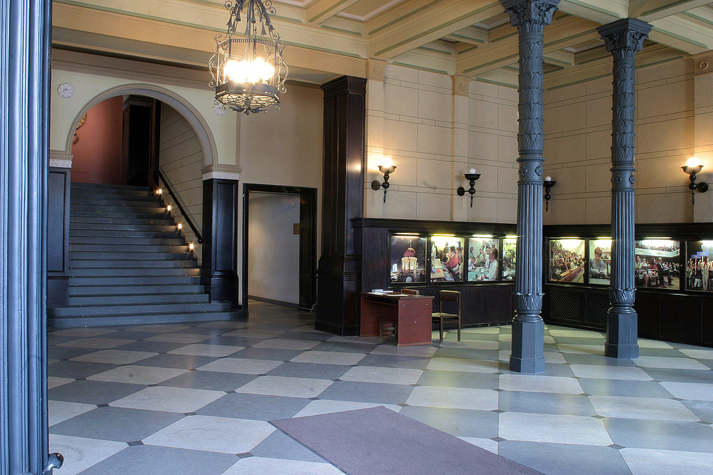 Ciemoties Latvijas Universitātes galvenajā ēkā Raiņa bulvārī 19 virtuāli un aplūkot vestibilu, Lielo Aulu, Mazo Aulu, Studentu karceri un jumta platformu iespējams šeit.