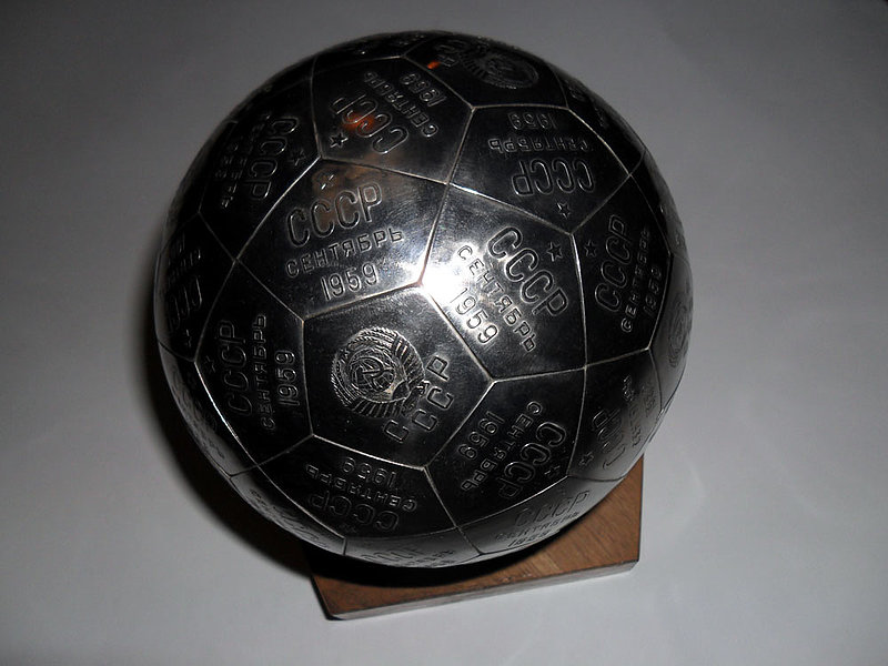 1959. gada 14. septembrī Mēnesi sasniedza un tajā ietriecās pirmais cilvēku veidotais priekšmets – Padomju Savienībā radītā zonde “Luna 2”, kurā bez zinātniskās aparatūras atradās arī vimpelis, kas sastāvēja no piecstūra elementiem ar PSRS ģerboni un uzrakstu “PSRS 1959. gada septembris”. Šādi vimpeļi tika izgatavoti vairāki un atlikušie tika uzdāvināti Padomju Savienības kosmonautikas muzejiem, kā arī ASV prezidentam Dvaitam Eizenhaueram.
