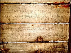 Zinātņu un tehnikas vēstures muzeja 2014. gada augusta mēneša priekšmets – 100 gadus vecs uzraksts Astronomiskajā tornī.