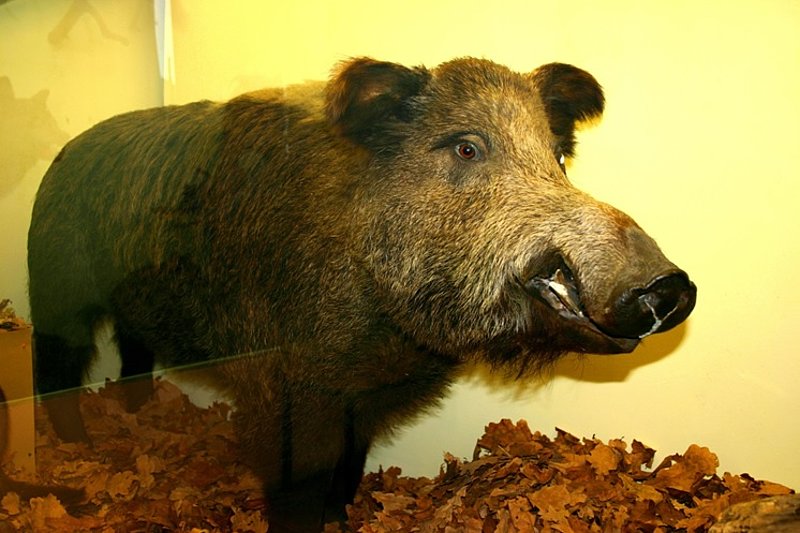 Viens no izmēros lielākajiem eksponātiem Zooloģijas muzeja ekspozīcijā ir meža cūkas (Sus scrofa) izbāzenis. Šī konkrētā meža cūka dzīvojusi iepriekšējā gadsimta sākumā Kurzemē, Zūru novadā.