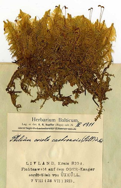 Konkrētais sūnas eksemplārs ievākts vairāk kā gadsimtu atpakaļ, tālajā 1913. gadā egļu mežā Ogres Kangaros. Tas ir apskatāms izcilā Baltijas botāniķa K. R. Kupfera sūnu kolekcijā Latvijas Universitātes Botānikas muzeja herbārijā Rīgā, Kronvalda bulvārī 4. Muzeju var apmeklēt darba dienās, iepriekš piesakoties pa tālruni 27852990 muzeja vadītājai Irēnai Bergai.