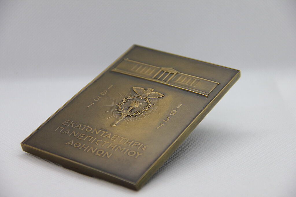 Kastītes otrā pusē redzami četri apļi. Tās ir starptautiskos konkursos iegūtās medaļas par ražošanu un inovācijām, kuras rūpnīca “Vulkāns” ir ieguvusi. 1. medaļa ir zelta medaļa, kurā bijusi aina ar 3 personāžiem no kāda antīkā mīta, virs kura joprojām salasāms uzraksts uzraksts vācu valodā: “Segen der Arbeit”, tulkojumā: “Darba svētība”. Apakšā rakstīts, ka medaļa iegūta 1888.g. Mītavā jeb Jelgavā. Par 2. medaļu nav informācijas – tajā redzams cilvēka portrets sānskatā, taču raksts ir pārāk neliels un izplūdis, lai to būtu iespējams salasīt. Zem medaļas rakstīts, ka tā ir sudraba medaļa, kas 1885.g iegūta Kuldīga. Tātad, tā varētu būt kāda vietējā atzinības medaļa. Uz 3. medaļas redzams beļģu karalis Leopolds II, kurš atpazīstams pēc viņa ikoniskās bārdas, kā arī viņa vārds ierakstīts aplī. Leopolds II bija valdnieks, kurš centās panākt, ka Beļģija attīstās par imperiālu lielvaru, veicot ekspedīcijas un iekarojumus Āfrikā, Kongo upes baseinā [20]. Zem medaļas rakstīts, ka tā ir zelta medaļa, kas iegūta 1888.g. Briselē, kur notika pasaules rūpniecības izstāde. 4. medaļa arī saglabājusies tikai daļēji – redzama daļa no Kurzemes bruņniecības ģerboņa un uzraksts: “Ehrenpreiß der Kurländische Ritterschaft”, latviski: “Kurzemes bruņniecības goda balva”. Apakšā rakstīts, ka saņemta zelta medaļa Mītavā 1888.g. Kurzemes bruņniecība bija dižciltīgā jeb matrikulētā muižniecība Kurzemes hercogistē, kas arī pēc hercogistes pastāvēšanas laika beigām turpināja eksistēt, ar rezidenci Jelgavā [21]. Medaļu norādīšana uz kastītes bija veids kā pievērst uzmanību produkta kvalitātei un atzinumam, tādā veidā piesaistot arvien vairāk pircējus. Vairums medaļu iegūtas 1888.g., kas bija gads, kad “Vulkānā” sāka ražot mašīnas sērkociņu ražošanai, kuras arī pārdeva uz ārzemēm.