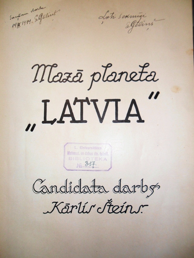 1933. gada 27. jūlijā vācu astronoms Karls Vilhelms Reinmuts Heidelbergas observatorijā atklāja asteroīdu 1933 OP=QP. Lielu darbu šajā atklājumā ieguldījis latviešu astronoms Kārlis Šteins - viņš pirmais noteica šī asteroīda precīzu orbītu. Studiju laikā 1933. gadā K. Šteins devās uz Poliju, kur 3 mēnešus praktizējās Krakovas astronomiskās observatorijas direktora profesora Tadeuša Banahēviča vadībā. K.Šteina darbs Krakovā galvenokārt bija saistīts ar mazo planētu fotografēšanu un to orbītu aprēķināšanu. Pēc tam, kad K. Šteins bija noteicis mazās planētas 1933 OP=QP orbītu, tā ieguva kārtas skaitli 1284, un saskaņā ar tradīciju orbītas aprēķinātājs tai deva nosaukumu — 1284 Latvia, par godu Latvijas Republikai. Savu diplomdarbu studijas beidzot Kārlis Šteins veltīja šim projektam – "Mazā planēta Latvia" (1933).