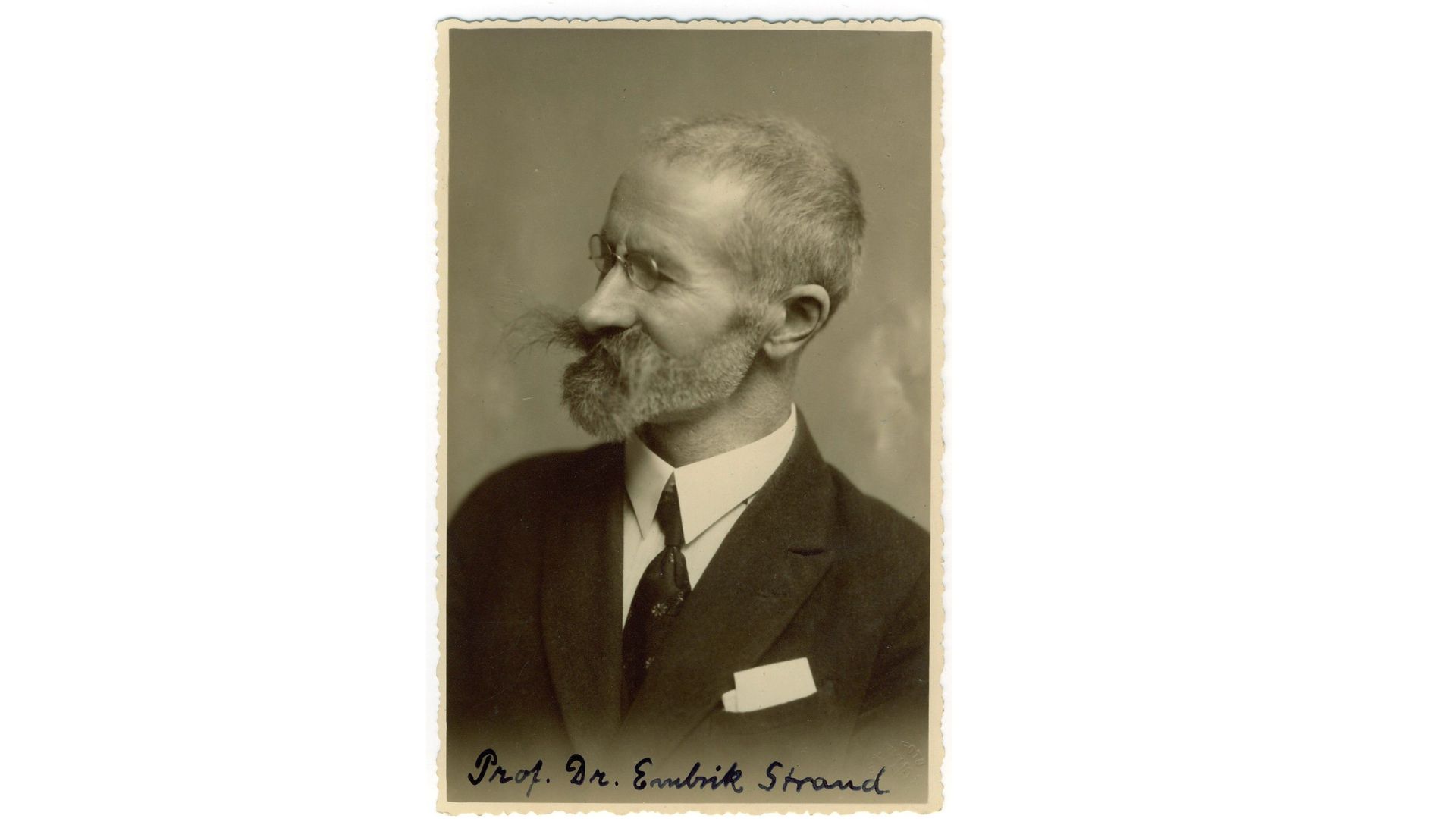 1876. gada 2. jūnijā dzimis zoologs Norvēģijā, Buskerudas provincē dzimis Embriks Strands. Studējis Oslo un Marburgas Universitātēs, strādājis Oslo un daudzos Vācijas muzejos. No 1922. līdz pat 1947. gadam E. Strands bija profesors Latvijas Universitātē, kā arī Matemātikas un dabaszinātņu fakultātes Sistemātiskās zooloģijas institūta (1922–1944) un no 1924. – 1940. gadam arī LU Hidrobioloģiskās stacijas direktors, zinātnisko rakstu izdevējs un redaktors. Sarakstījis ļoti daudzus - vairāk nekā 800 zinātniskos darbus, galvenokārt par pasaules zirnekļveidīgo un kukaiņu sistemātiku, kā arī publicējis darbus salīdzināmajā anatomijā, embrioloģijā un hidrobioloģijā. Daudzu valstu zinātnieki, aprakstot jaunus taksonus, nosaukuši tos par godu E. Strandam. Turklāt šajā jomā bijuši visai radoši – Embrikiola, Strandiella, strandi, embriki, embrikiellus, embrikstrandellus u.c. LU Muzeja Zooloģijas kolekcijās glabājas Embrika Stranda vāktā kukaiņu kolekcija – jātnieciņi Ichneumonidae gen. sp. etc. un tauriņi Lepidoptera.
