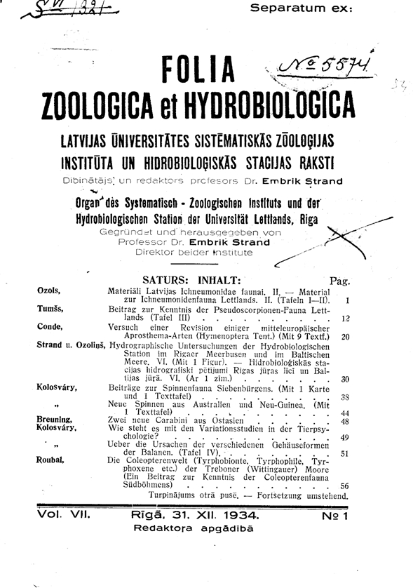 Spaček K., 1939. Prof. Dr. Embrik Strand 60 Jahre. Festschrift für Prof. Dr. Embrik Strand,1939, 5, S. 1–55.