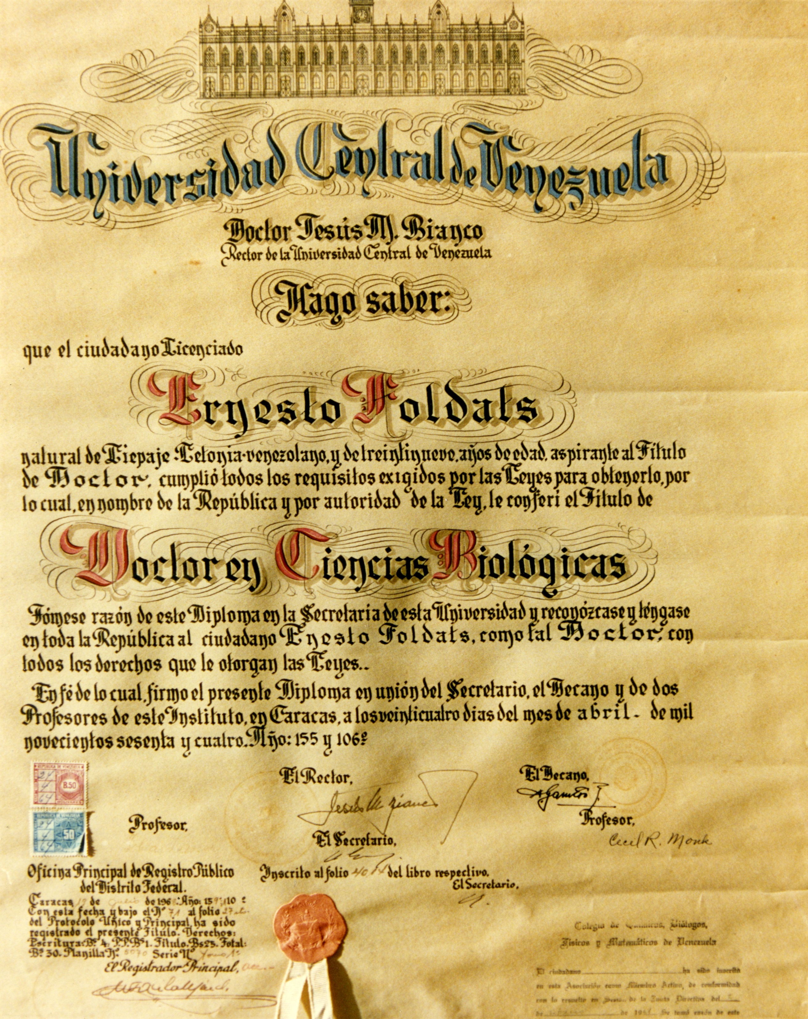 1925. gada 15. maijā Liepājā dzimis Ernests Foldāts, apbalvojumiem bagātais orhideju pētnieks. 1948. gada oktobrī emigrēja uz Venecuēlu, studēja bioloģiju Venecuēlas Centrālajā universitātē līdz 1954. gadam. Vēlāk studijas turpināja tajā pašā universitātē, paralēli mācoties un izstrādājot doktora disertāciju Hārvarda Universitātē ASV.