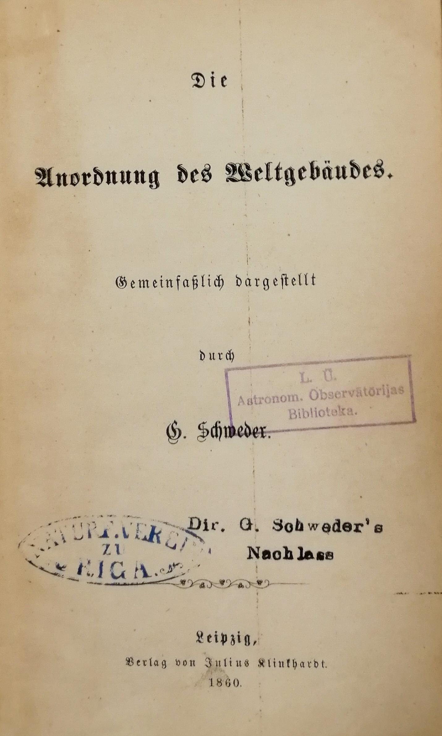 LU Muzeja krājumā glabājas G. Švēdera 1860. gadā sarakstītā grāmata "Die anordnung des weltgebäudes" ar autora komentāriem. Krājumā glabājas arī vairākas grāmatas no G. Švēdera personīgās bibliotēkas, tai skaitā 1854. gadā izdotais Jozefa Litrova zvaigžņu atlants.