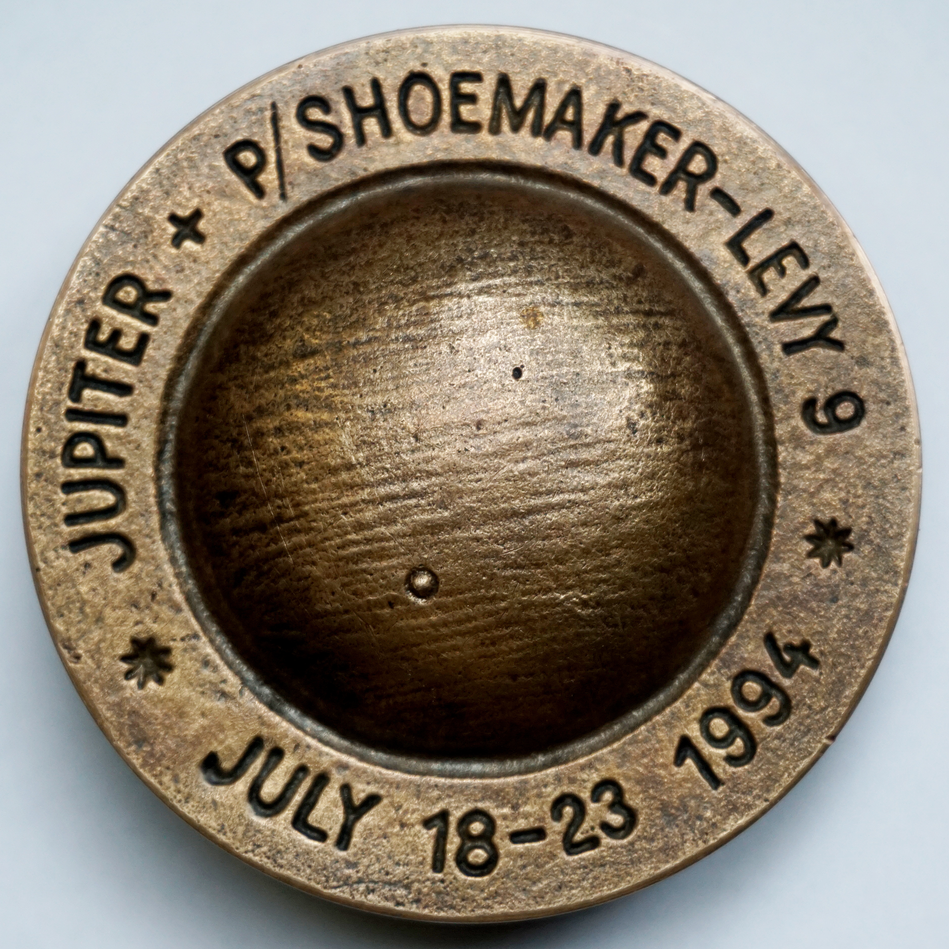 Ļoti interesantas ir divas astronomiskiem notikumiem veltītas medaļas. Pirmā, 1994 gadā tapusī Šūmeikera - Levī 9 komēta un Jupiters ir pavisam netipiskas formas medaļa. Tā atgādina pēc formas Jupiteru – bumba ar gredzenu, kas ērtības dēļ ievietota koka paliktnī. Šī medaļa veltīta Šūmeikera—Levi komētai, kura 1994. gadā ietriecās Jupiterā, kas vienlaicīgi bija arī pirmais tiešais astronomisko objektu sadursmes novērojums Saules sistēmā. No 16. līdz 22. jūlijam aptuveni 21 skaidri izšķirami Šūmeikera-Levija 9 komētas fragmenti ietriecās Jupiterā. Katrs fragments bija aptuveni 2 kilometrus garš, tie ietriecās Jupitera atmosfērā ar ātrumu 60 km/s. Sadursmes rezultātā atmosfērā radās tūkstošiem kilometrus augsti karstu gāzu "burbuļi" un milzīgas, tumšas "rētas", kuras Jupitera atmosfērā saglabājās nedēļām ilgi.