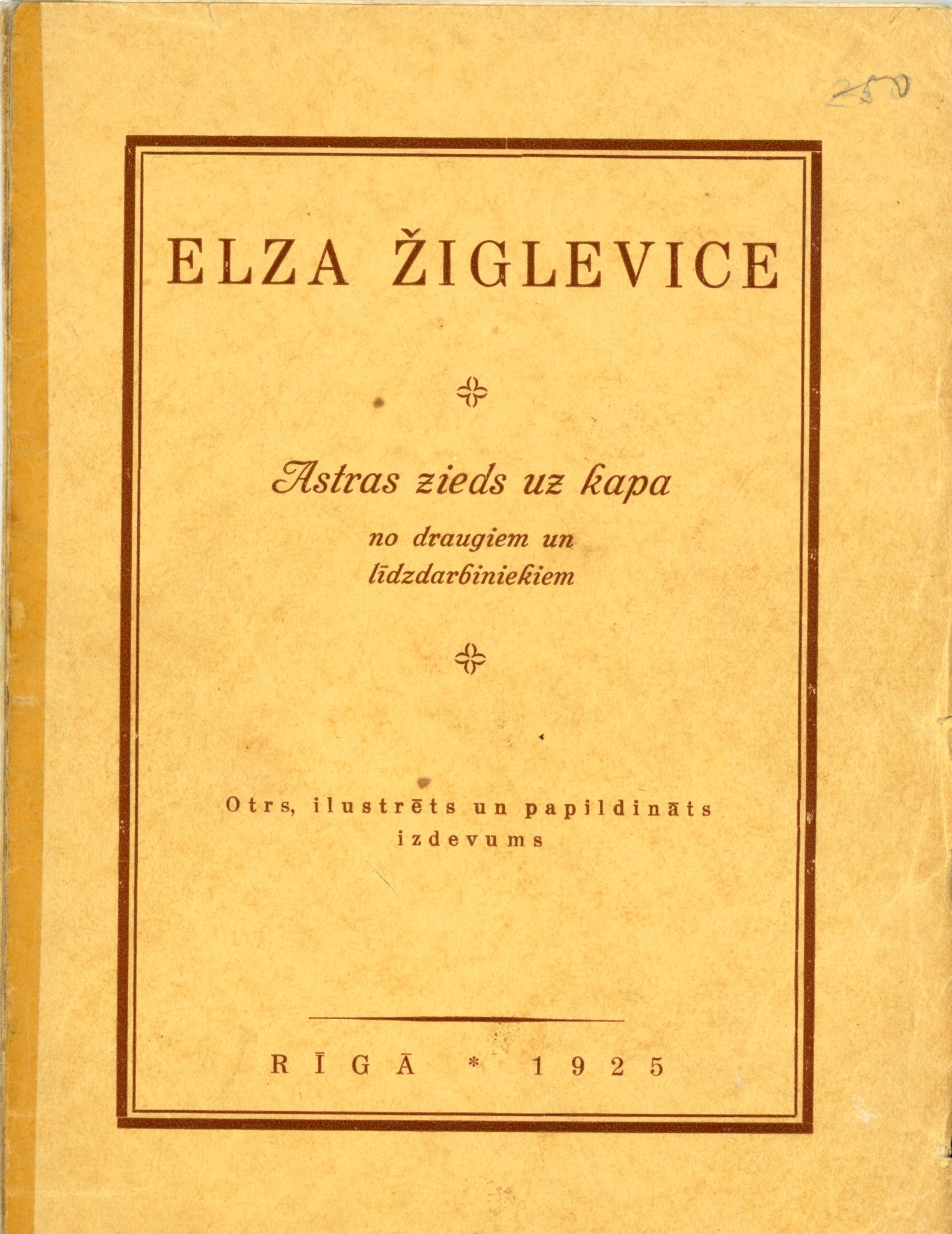 Lai godinātu Elzas Žiglevices piemiņu un viņas ieguldījumu Latvijas neatkarības izcīnīšanā, tuvinieki 1920. gadā izdeva brošūru “Elza Žiglevice. Astras zieds uz kapa”, kurā aprakstīta viņas dzīve, rakstura īpašības un sabiedriskā darbība Pirmā pasaules un Neatkarības kara laikā. Izdevums ar fotogrāfijām atkārtoti izdots 1925. gadā.