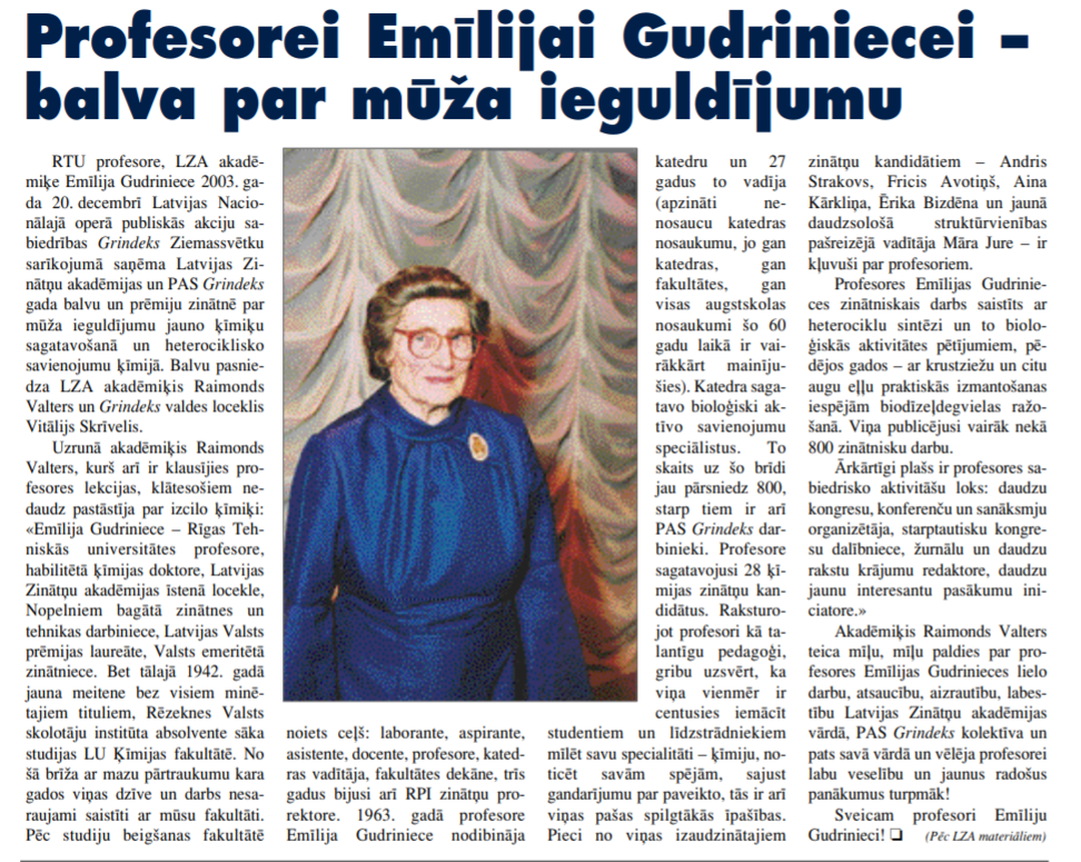In memoriam Profesore Emīlija Gudriniece (03.08.1920.–04.10.2004.)