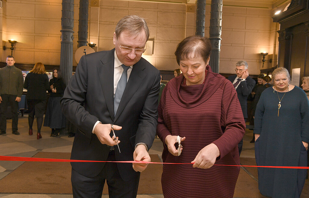 Izstādes "Vivat, crescat, floreat Universitas Latviensis! Lielās aulas atspulgs" atklāšana