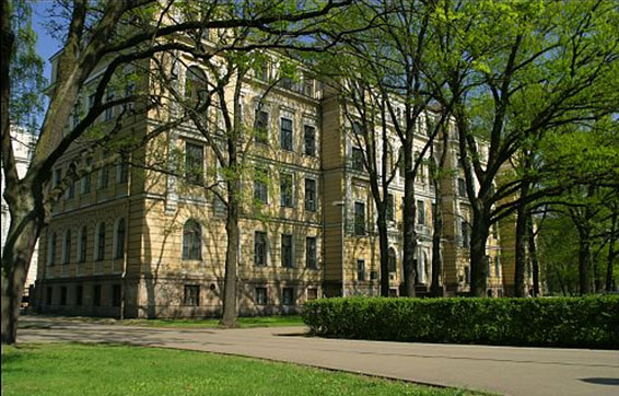 Sākotnēji Rīgas politehnikums. Ēka tapusi pakāpeniski. Pēc G. Hilbiga projekta celti atzarojumi gar Raiņa bulvāri (1866), Merķeļa ielu (1876) un Inženieru ielu (1883). Arhitektu ielas sānu korpuss – pēc arhitekta O. Hofmaņa projekta (1910). Neoromānika.