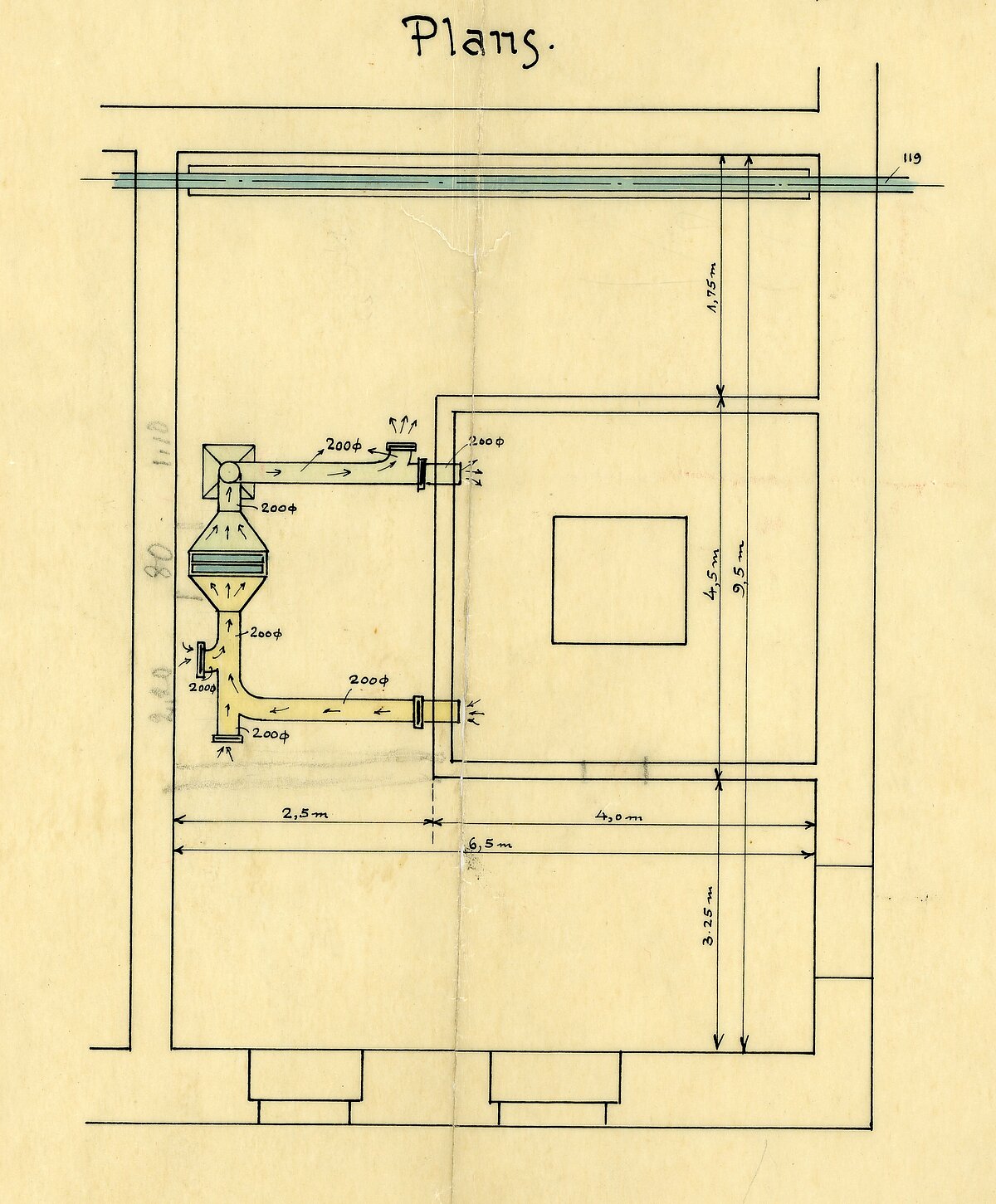 [7] Pulksteņu pagraba telpas rasējums Nr. 1. LU Muzeja krājums (CM1714)