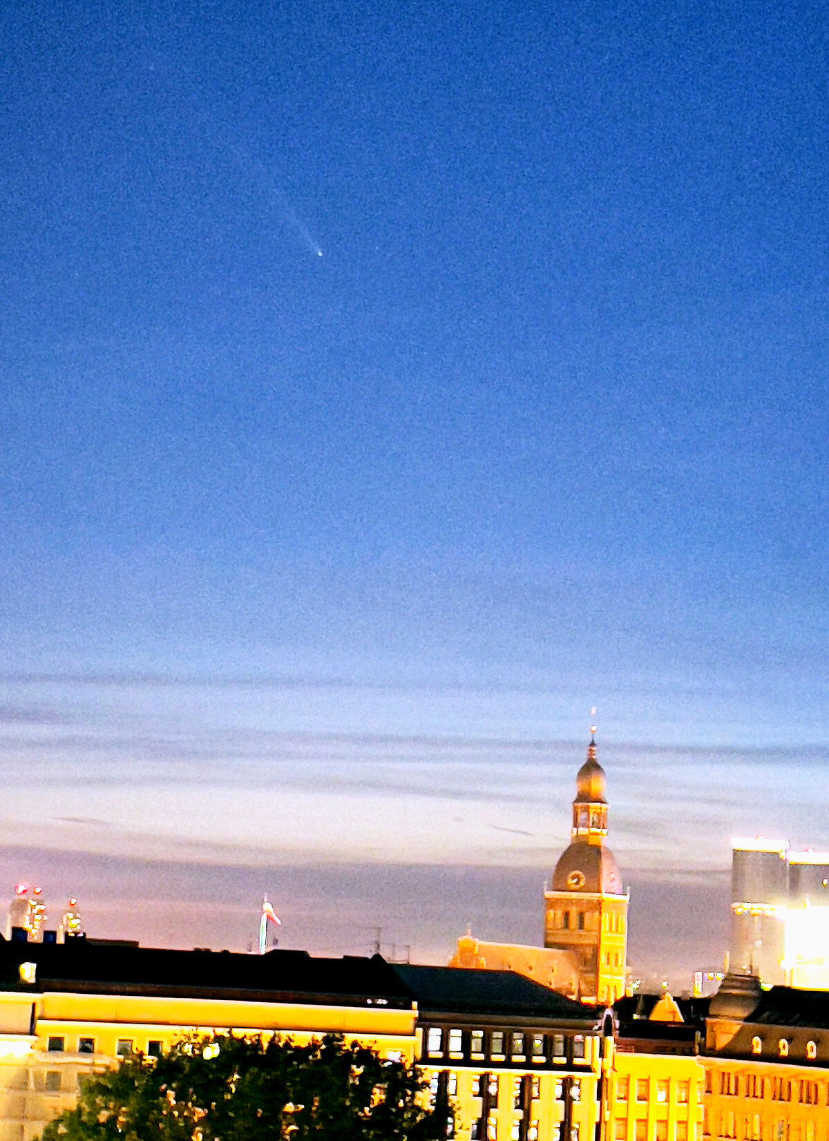 LU Muzejā saņēmām arī apmeklētāju uzņemtos novērojumu objektu attēlus, ko varat šeit aplūkot – Baibas fotografētā komēta un Germana iegūtais Mēness attēls, kā arī paša Vitālija Kuzmova fotografētais Mēness ar halo ap to un komēta virs Vecrīgas.