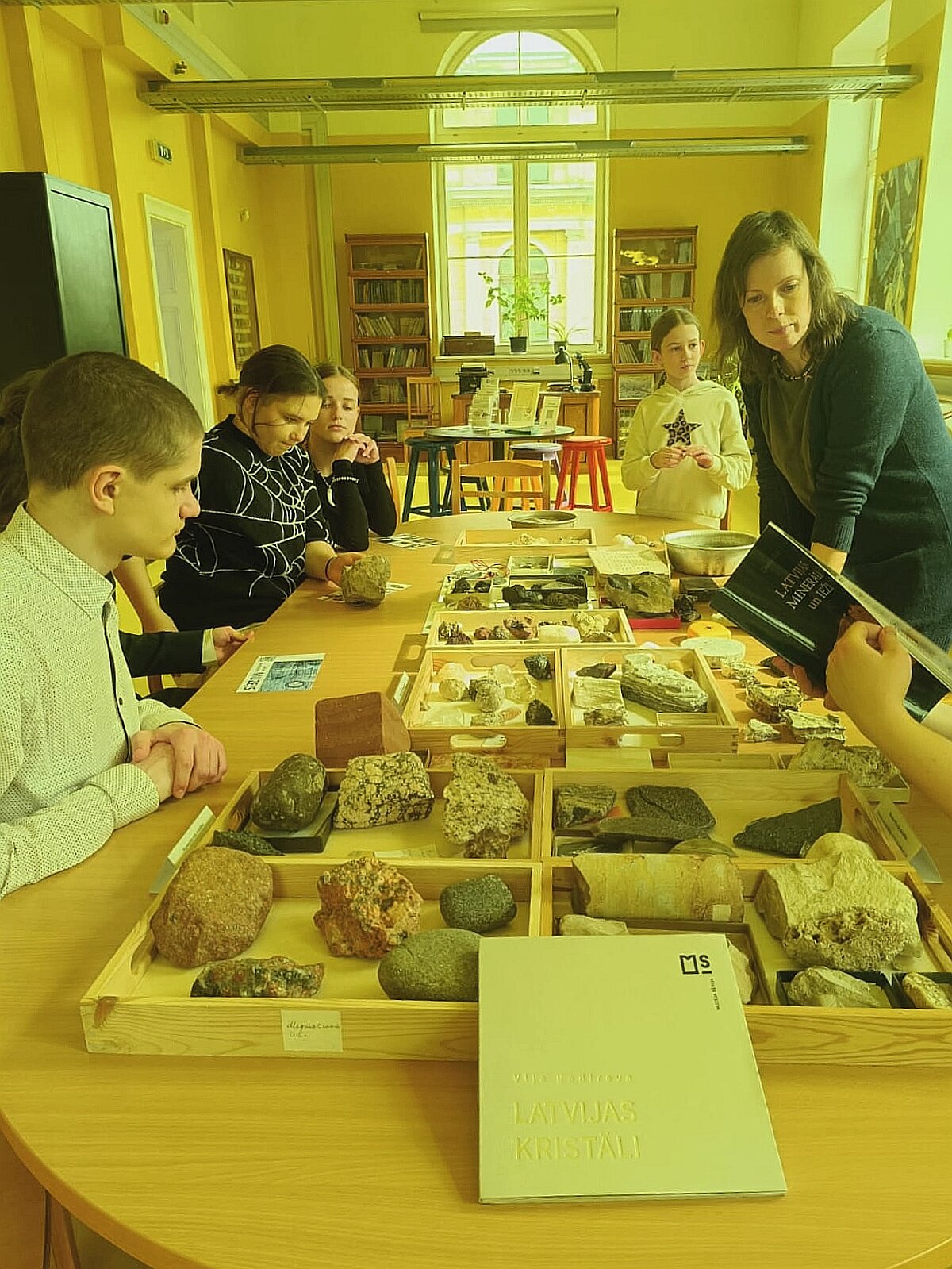 Tā kā Ģeoloģijas kolekcijas ir daļa no LU Muzeja Dabaszinātņu kolekcijām, diena sākās ar ekskursiju visās Dabaszinātņu kolekcijās, iepazīstot arī Botānikas un Zooloģijas bagātīgo krājumu, kā arī Latvijas Universitātes vēsturi. Ekskursija noslēdzās ar Vijas Hodirevas saistošo stāstījumu ekspozīcijā “Latvijas ģeoloģiskais griezums un derīgie izrakteņi” un dalību Ilzes Lementujevas vadītā muzejpedagoģijas programmā, kur dalībnieki varēja praktiski darboties ar iežu paraugiem un eksperimentēt ar tiem.