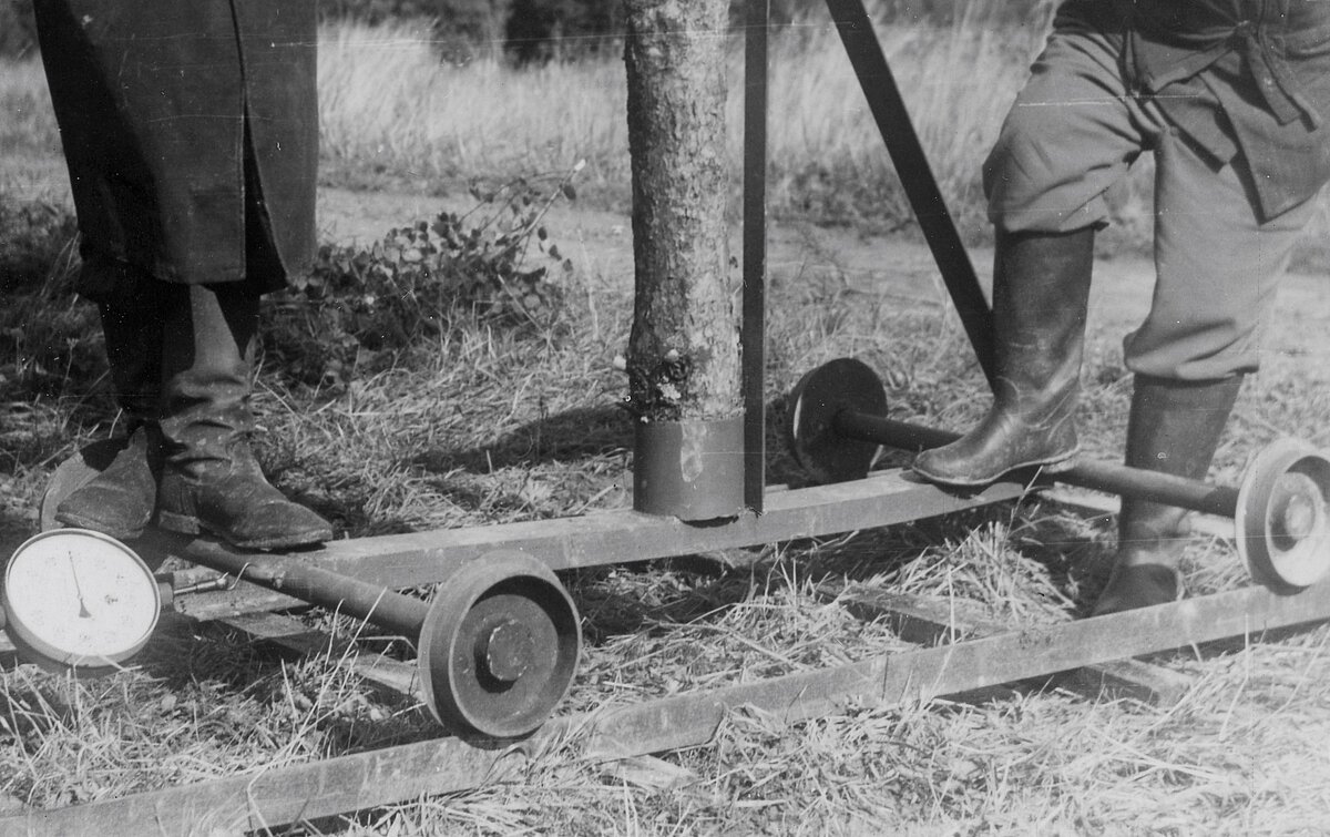 1962. gada marta beigās Elgas Kaupušas vīrs Leons šim pasākumam izgatavoja speciālus ratiņus, kas pārvietojās pa sliedēm. Tie izmaksāja 1000 rubļu un varēja vest vienu tonnu lielu kravu. Septembra vidū K. Šteins, E. Kaupuša un Leonids Roze kopā ar LVU saimniecības daļas šoferi E. Brambatu devās uz Madonas rajonu, kur veica eksperimentālus mērījumus berzes spēka noteikšanai, ko rada vējš pret kokiem. Uz ratiņiem vertikāli nostiprināja nozāģētu koku un ar dinamometru mērīja, ar cik lielu spēku vējš iedarbojas uz koka lapotni, vienlaikus ar anemometru 4 metru augstumā mērot vēja ātrumu. Tā izmērīja vēja pretestību pieciem 6–20 metrus augstiem kokiem (vienai priedei, diviem bērziem un divām eglēm). Secināja, ka pretestības spēks ir proporcionāls vēja ātrumam un lapotnes šķērsgriezuma laukumam, un ka visus izmērītos kokus var aptuveni raksturot ar vienu berzes koeficientu. [5, 6]