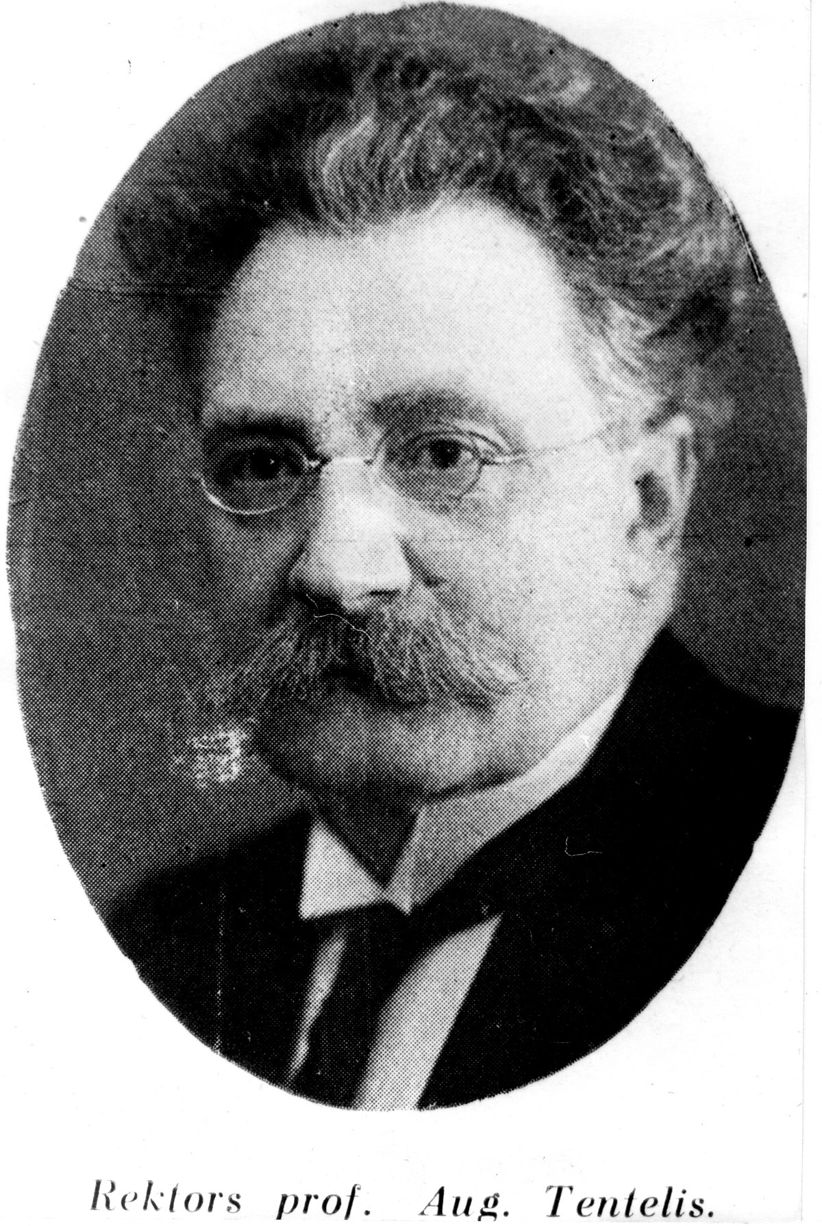 Vēlākais rektors, vēsturnieks Augusts Tentelis darbu Latvijas Augstskolā uzsācis īsi pēc tās atvēršanas – 1920. gada martā kļūdams par docentu fakultātē, kura tolaik saucās Valodnieciski filozofiskā, bet gada beigās kandidējot uz profesora vietu – un uzticīgs savai darbavietai un vēstures zinātnei palicis līdz pat mūža galam. Interesanti, ka, saistībā ar kvalificētu mācībspēku trūkumu, 20. gadsimta 20. gados viss, kas bija nepieciešams, lai kļūtu par Latvijas Augstskolas profesoru, bija maģistra vai doktora grāds un akadēmiskā pieredze, kandidātus, kuriem viena vai otra trūka, bieži uzņēma darbā kā docentus.