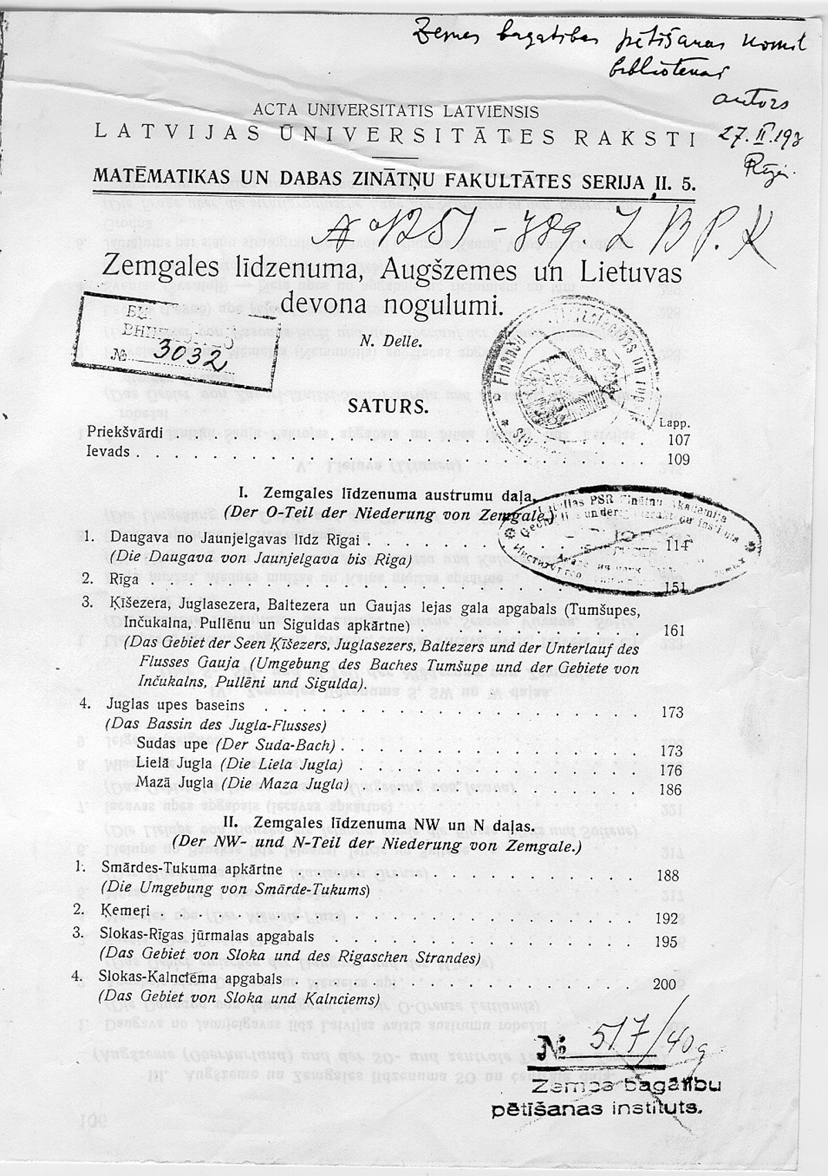 MĒNEŠA PRIEKŠMETS. LU docenta Nikolaja Delles sastādītā 1942. gada ģeoloģiskā karte