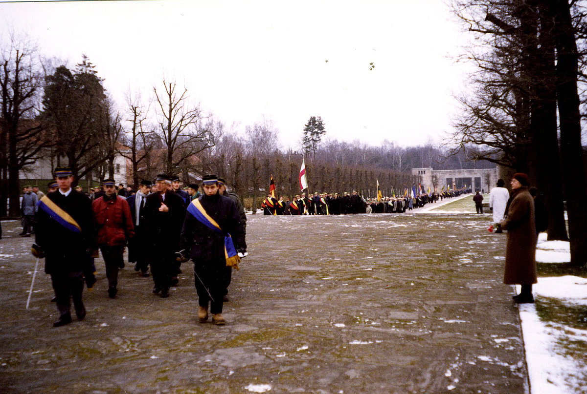 Fotogrāfijās attēlots, kā 1999. gada 18. novembra studentu mūža organizāciju gājienu vadīja Prezidiju Konventa prezidējošā latviešu studentu korporācija Fraternitas Cursica, kurai 1999. gada II semestrī tika uzticēts vadīt Prezidiju Konventu. Prezidija Konvents ir studentu korporāciju jumta organizācija, kas apvieno un regulē sakarus starp citām Prezidiju Konventā ietilpstošajām studentu korporācijām. Ļoti unikāls ir fakts, ka fotogrāfijās gājienā dalību ņem visas studentu akadēmiskās mūža organizācijas, neatkarīgi no tā, vai tās ir studentu/šu korporācijas, studentu konkordijas, studentu/šu vienības u.c. Līdz pat šodienai 18. novembrī tiek nolikti malā savstarpēji strīdi starp organizācijām, lai apvienotos kopā savu bijuši biedru mūžīgai piemiņai.