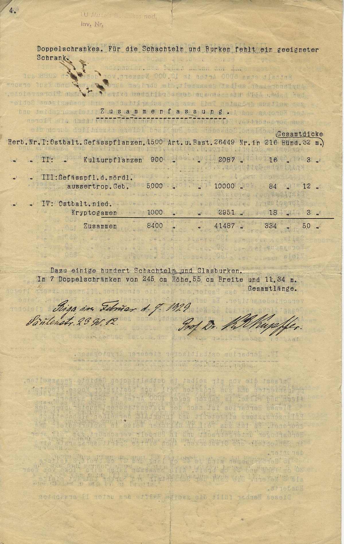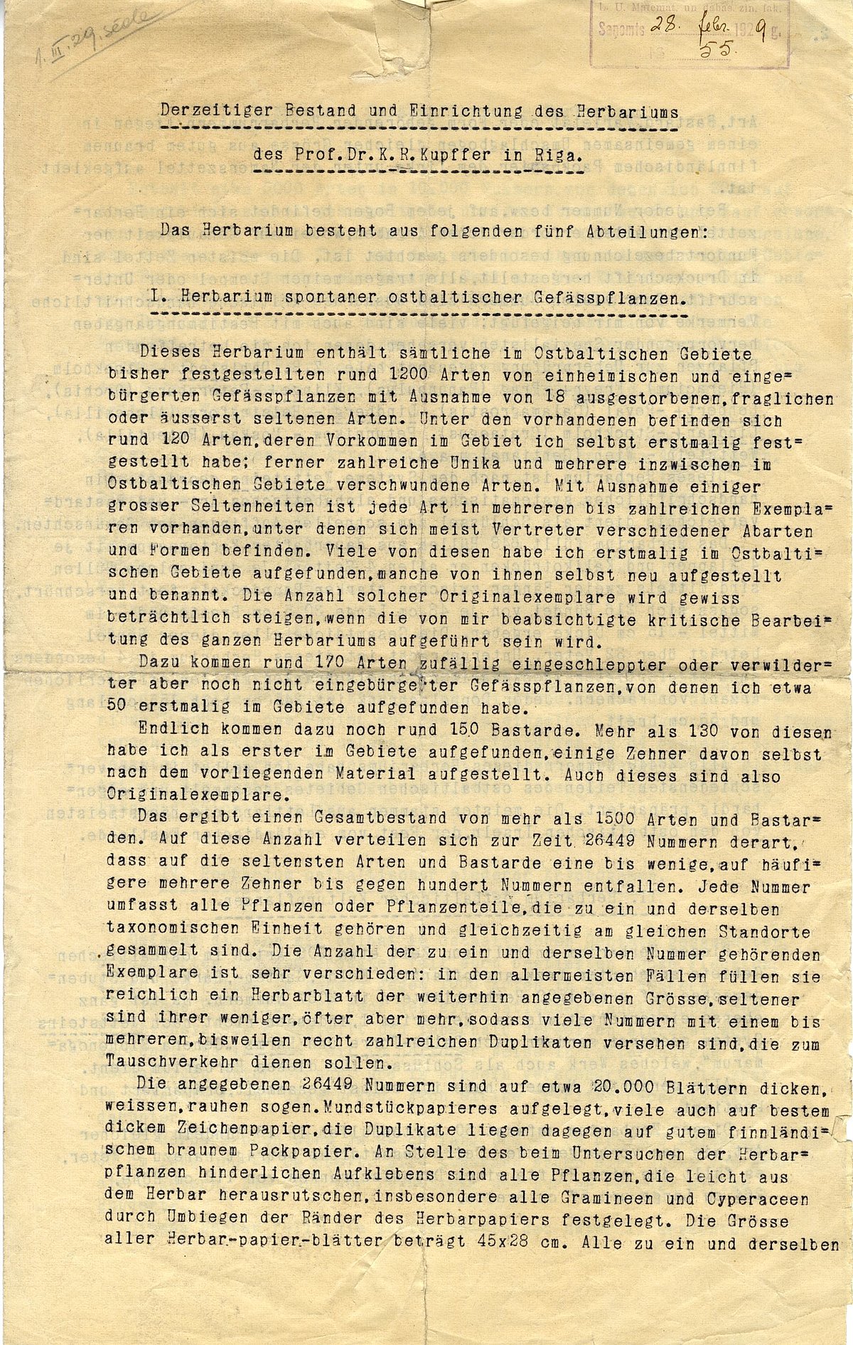 Latvijas Universitātes (LU) Muzeja Botānikas un mikoloģijas kolekciju telpās Kronvalda bulvārī 4, Rīgā atrodas vairāk kā simts gadus veci skapji, kuros šobrīd glabājas kolekcijas krājums. Atverot vienu no šiem skapjiem, tā durvju iekšpusē redzams botāniķa Karla Reinholda Kupfera (1872 – 1935) ar roku rūpīgi rakstīts herbāriju saraksts, kas saglabājies tur no laikiem, kad šie skapji vēl piederēja zinātniekam. Skapjos viņš glabāja savu lielo herbāriju un sarakstā norādīts, kas glabājies konkrētajā skapī.