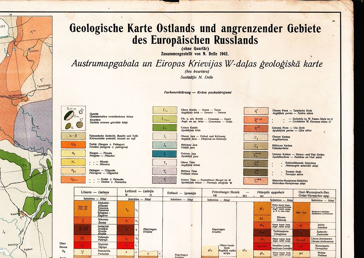 1942. gadā Latvijas Vērtspapīru spiestuve Rīgā iespieda Zemes bagātību pētīšanas institūta izdevumu – N. Delles vadībā sastādīto Ostlandes un Rietumkrievijas ģeoloģisko karti, kuras pilns nosaukums bija