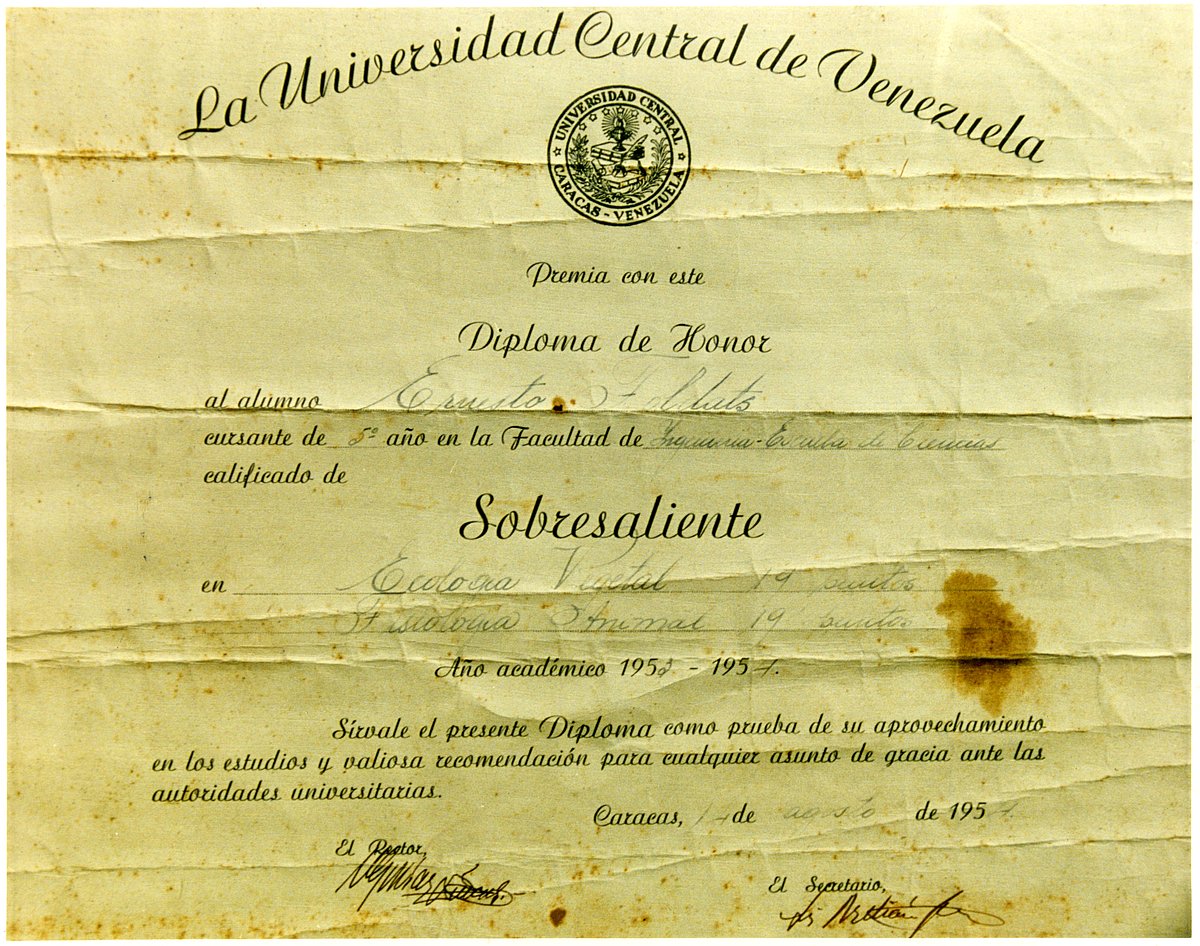 - 1965 Venecuēlas Centrālās universitātes Zinātņu fakultātes Zelta medaļu un diplomu