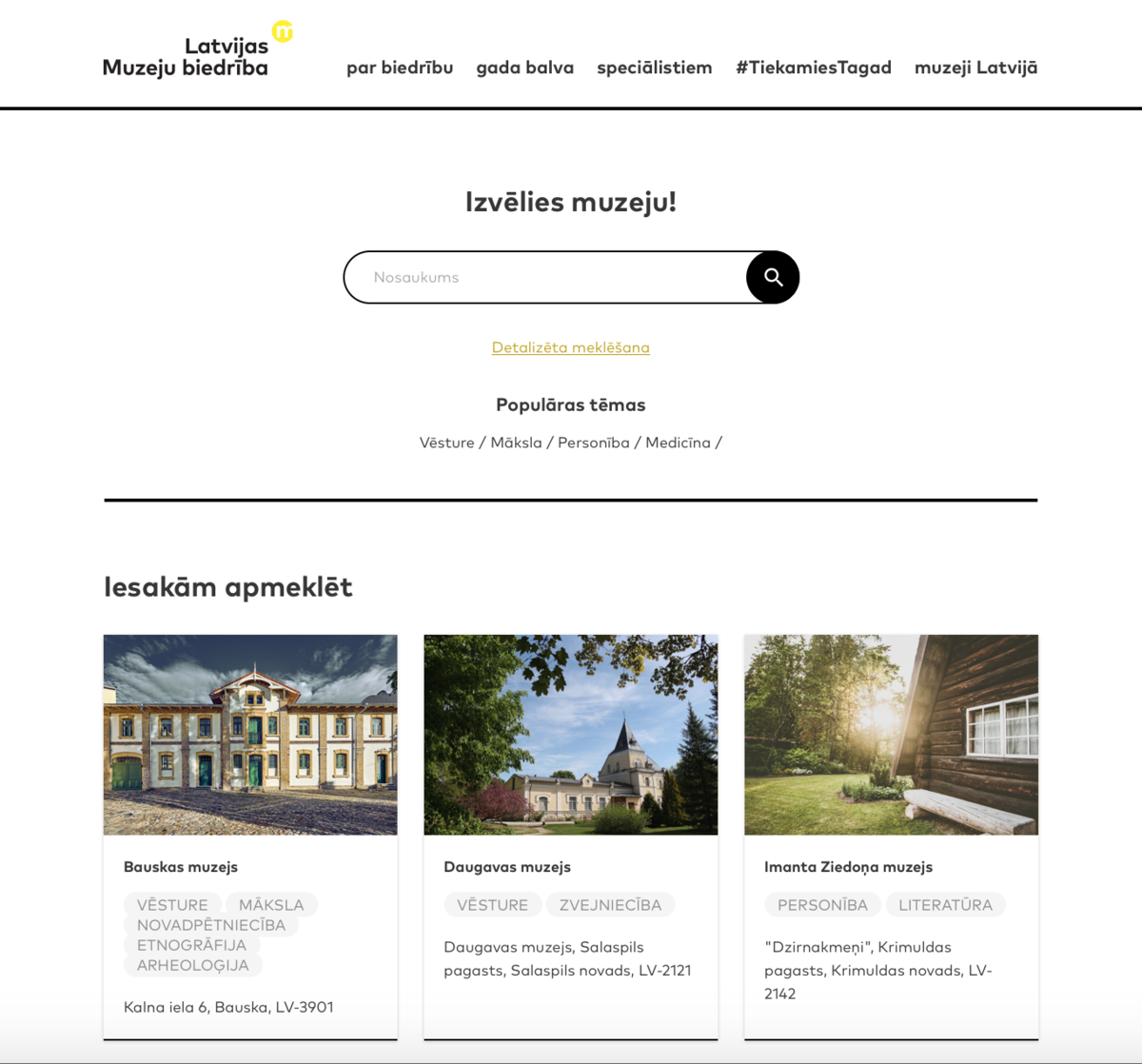 Ikvienam pieejams jauns un mūsdienīgs muzeju katalogs “Muzeji Latvijā”. Latvijas Muzeju biedrība (LMB) ir izveidojusi jaunu un lietotājam ērtu muzeju katalogu “Muzeji Latvijā”. Katalogs kalpo kā noderīgs rīks ikvienam interesentam, lai atrastu jaunāko informāciju par Latvijas muzejiem un to piedāvājumu.