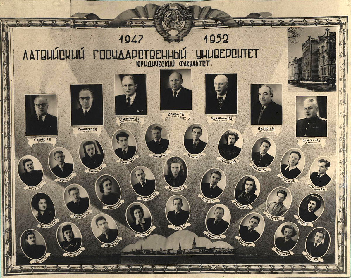 LU Muzeja LU vēstures kolekcijā glabājas no 1933. gada filologu grupas izlaiduma fotogrāfija. Tajā ir attēloti absolventi ar Filoloģijas un filozofijas fakultātes profesoru Augustu Tenteli, kas aizvietoja profesoru Franci Balodi, kurš tajā laikā bija devies atvaļinājumā. LU vēstures kolekcijās arī glabājas 50. gadiem raksturīgās fotogrāfiju vinjetes ar mācību spēkiem un absolventiem. Foto vinjetes parasti bija fakultāšu albumos un katram absolventam. Foto vinjetes parasti veidoja ar dažādiem motīviem, piemēram, ozolu lapu vītnēm.