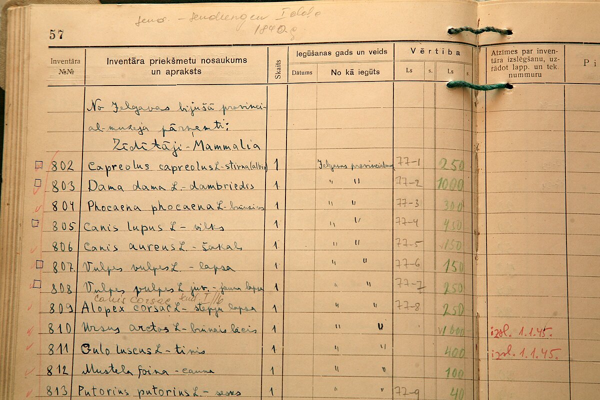 Latvijas Universitātes (LU) Muzeja Zooloģijas kolekcijās glabājas šī institūta inventāra žurnāli, kuros uzskaitīts laboratorijas inventārs un muzeja priekšmeti, kas izmantoti studentu apmācībā. Lielākā daļa no tiem atrodas krājumā vēl tagad.