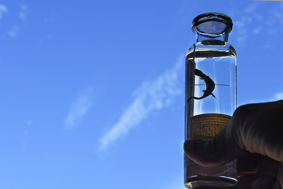LU Muzeja ekspozīcijā skatāms slapjais preperāts - spirtā iekonservēta neliela Sibīrijas salamandra Salamandrella keyserlingii. Etiķete liecina, ka eksponātu Sistemātiskās Zooloģijas un salīdzinošās anatomijas institūtam dāvinājis Nikolajs Delle, kurš šo dzīvnieku 1921. gada 20. aprīlī ievācis Vladivostokas apkaimē. N. Delle dzimis un audzis Tālajos Austrumos, bet 1922. g. ieradās Latvijā, studēja Latvijas Universitātē (LU) un kļuva par pazīstamu ģeologu [1].