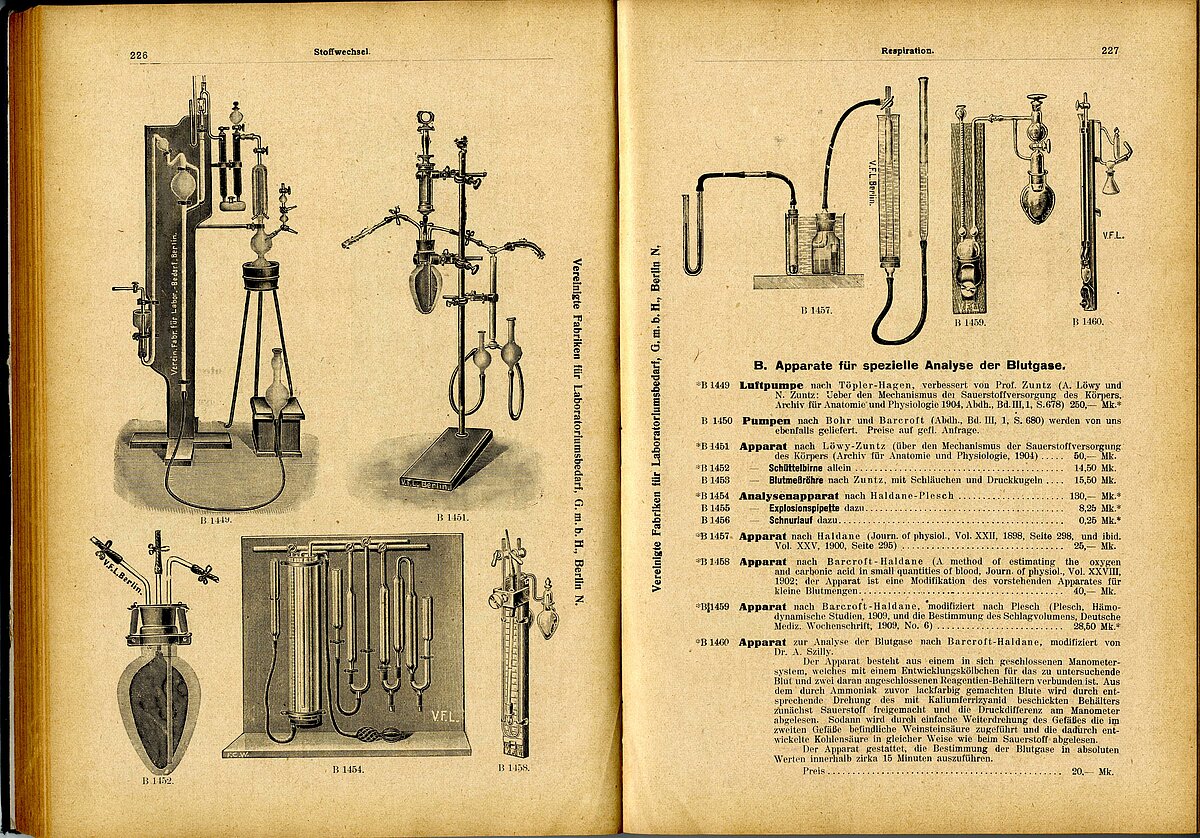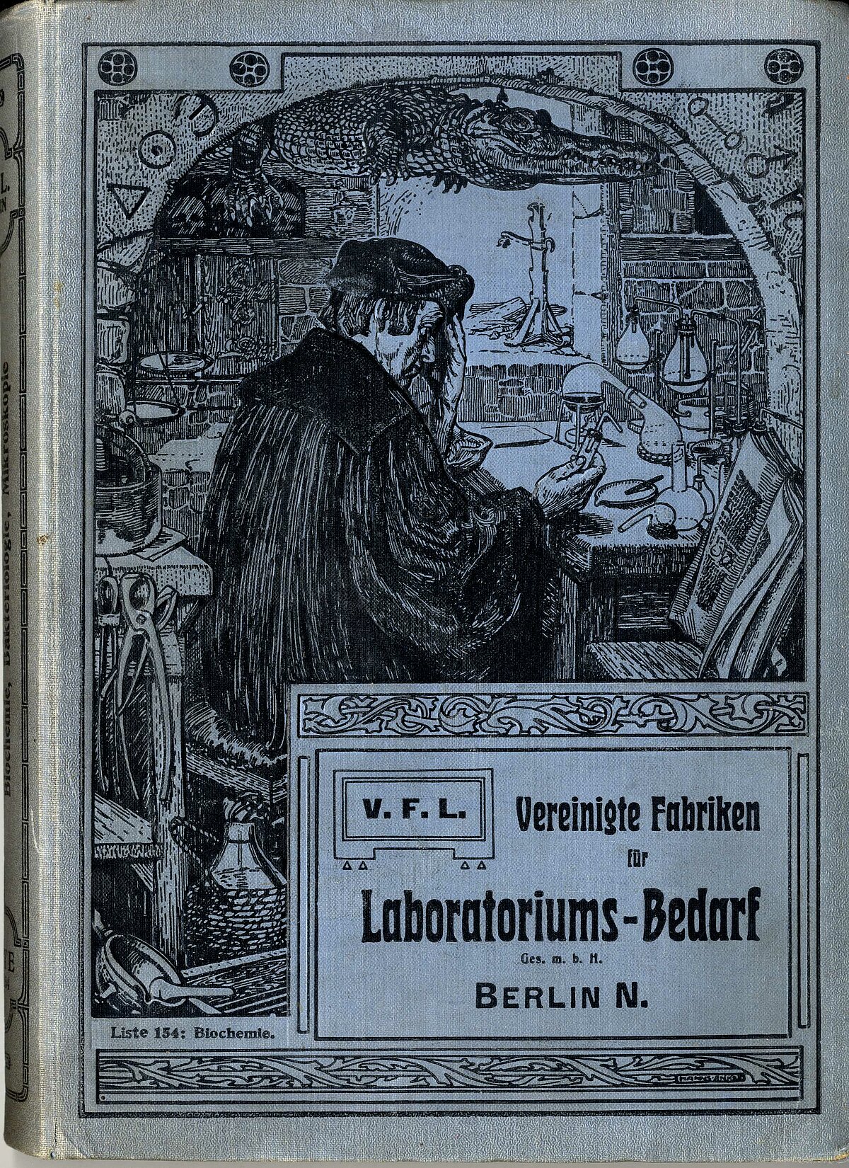 V.F.L. jeb Vereinigte Fabriken für Laboratoriums-Bedarf (Apvienotā Laboratorijas Piederumu Rūpnīcas) Berlīnē katalogs Nr. 154 piedāvāja savā laikā (1901. gadā) pasūtīt bioķīmijas laboratorijām nepieciešamo aprīkojumu – velkmes skapjus, vivisekcijas piederumus, piltuves, filtrācijas iekārtas un daudz ko citu.