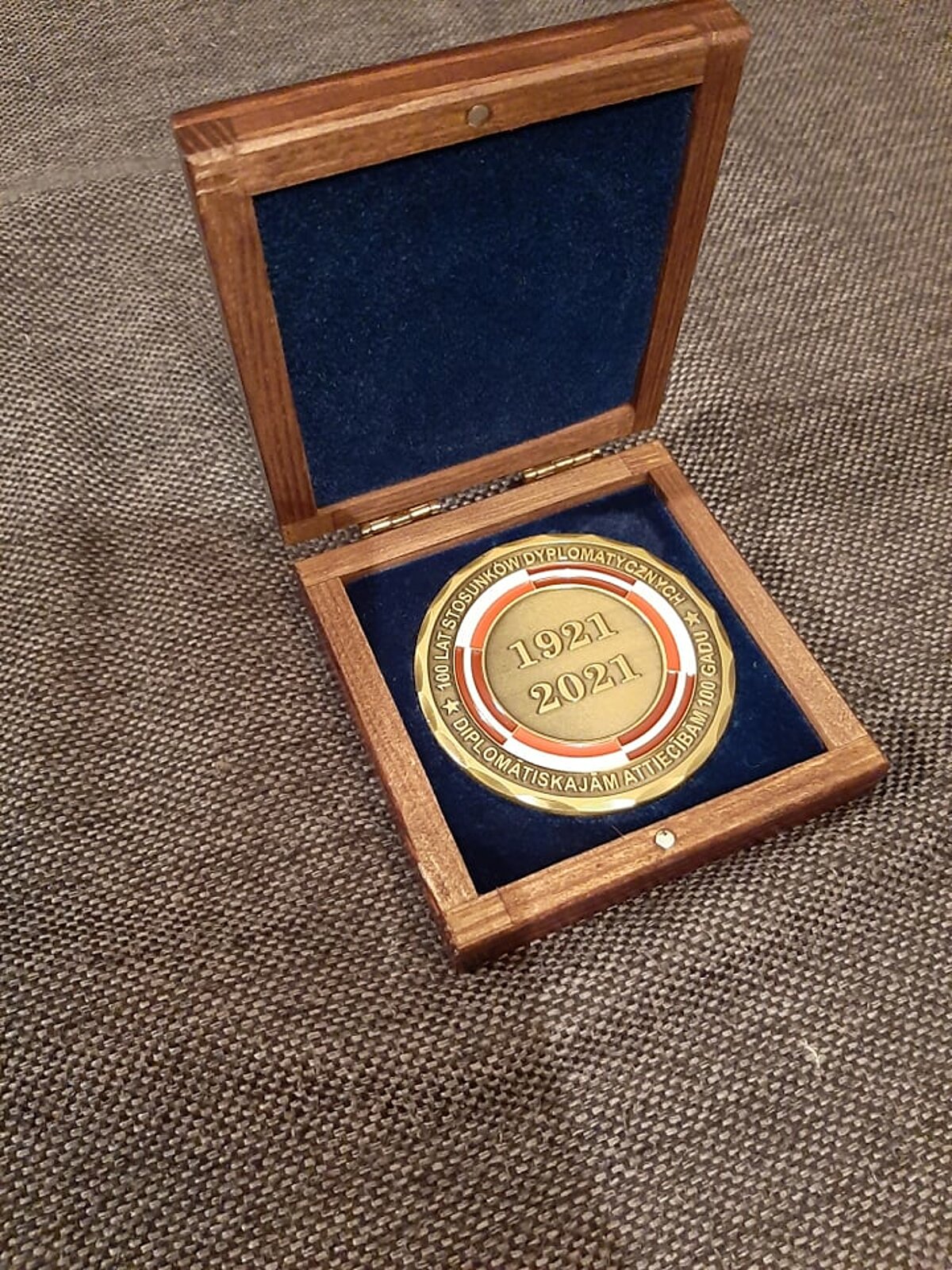 2021. gada 27. janvārī apritēja 100 gadi kopš Polija oficiāli atzina Latvijas neatkarību, kad Polijas valdības delegāts Vitolds Kameņeckis iesniedza Latvijas ārlietu ministram, latviešu studentu korporācijas Talavija korporantam Zigfrīdam Annai Meierovicam notu par Polijas valsts lēmumu atzīt Latvijas valsti de iure. Par godu šim notikumam Polijas vēstniece Latvijā Monika Mihališina [1] nosūtīja Polijas-Latvijas Simtgades piemiņas medaļu LU rektoram Indriķim Muižniekam, kurš izlēma šo medaļu nodot LU Muzejam pastāvīgā glabāšanā. Piemiņas medaļa tika uzņemta LU vēstures kolekcijas krājumā, kam sekoja pētnieciskais darbs par Polijas-Latvijas attiecībām starpkaru periodā LU vēstures kontekstā.