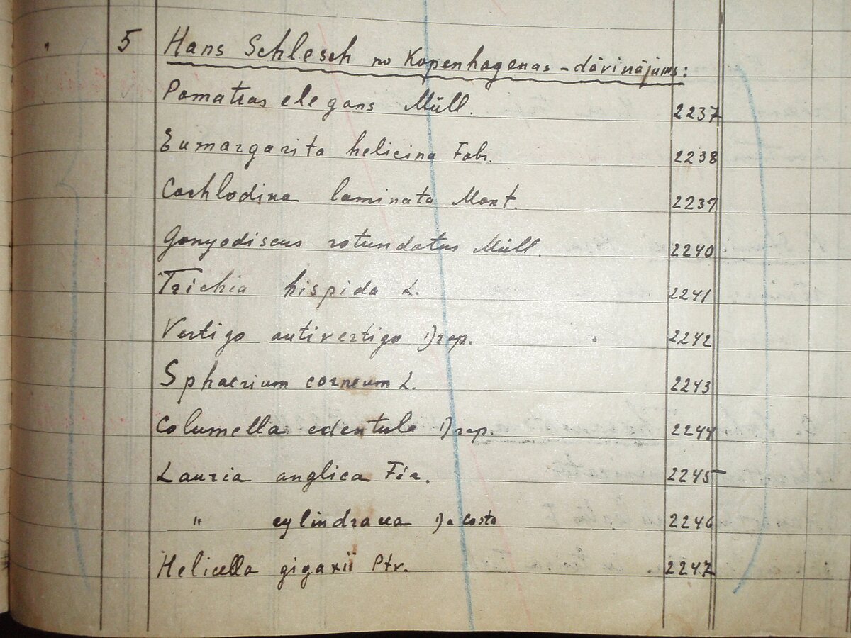 Hans Šlešs nopietni nodarbojies ar gliemju faunas izpēti kopš pagājušā gadsimta divdesmitajiem gadiem. Savus pētījumus H. Šlešs veicis gan dažādās Eiropas valstīs, gan arī citur pasaulē. Pagājušā gadsimta trīsdesmitajos gados viņš kontaktējies ar Latvijas Universitātes (LU) profesoru Embriku Strandu un 1942.gadā aizstāvējis doktora grādu toreizējā Rīgas universitātē. Kopš tā laika LU Zooloģijas muzejā (tagad LU Muzeja Zooloģijas kolekcijās) glabājas vērtīga viņa dāvinātā Latvijas faunas etalonkolekcija. Tāpat H. Šlešs ir papildinājis muzeja krājumu arī ar dažādu eksotisko zemju gliemju paraugiem. Kopā H. Šlešs atsūtījis 630 čaulu paraugus.