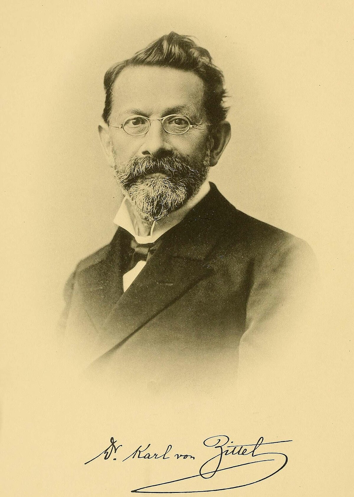 Plakātu autors ir izcils vācu zinātnieks Karls Alfrēds fon Citels (Karl Alfred von Zittel, 1839 – 1904). K. Citels bija profesors Minhenes Universitātē un Minhenes Paleontoloģijas muzeja direktors un ir autors apmēram 180 zinātniskiem darbiem – gan īsiem rakstiem, gan plašiem apcerējumiem par paleontoloģiju. Tā laika paleontoloģijas un ģeoloģijas vēsture atspoguļota darbā Geschichte der Geologie und Palaeontologie bis Ende des 19 Jahrhunderts. Par K. Citela izcilāko darbu uzskata Paleontoloģijas rokasgrāmatas Handbuch der Palæontologie piecus sējumus (1876-1893), kas sarakstīti kopā ar A. Šenku, V.P. Šimperu un S.H. Skuderu un ir šajā jomā viens no izcilākajiem darbiem, kas paleontoloģijai ļāvis kļūt par patstāvīgu zinātni.