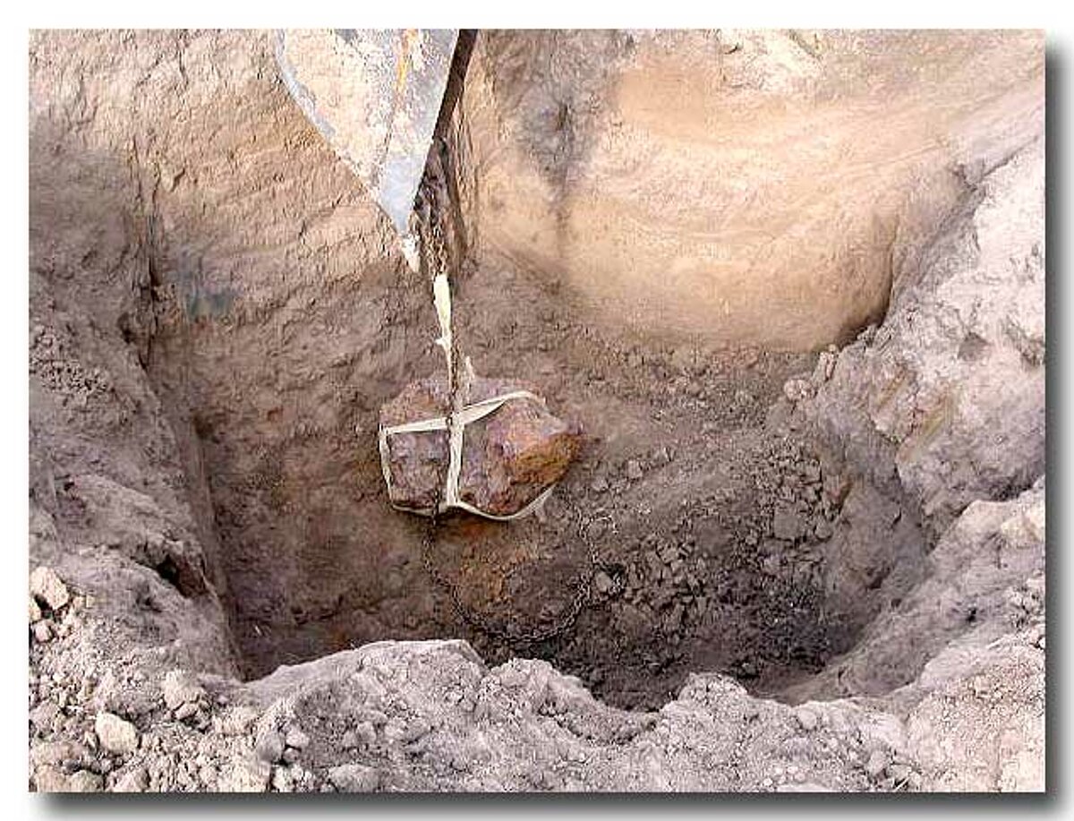 Vienā no vietām tika izrakta divas pēdas dziļa bedre, Stīvs ieleca bedrē un pārbaudīja to, bet pagaidām neko neatrada. Bedri padziļināja līdz piecām pēdām (aptuveni 1,5 metri) – vēl aizvien nekas netika atrasts! Neviens cits no iepriekšējiem Brenhemas meteorītiem nebija atrasts lielākā dziļumā, tas radīja bažas. Stīvs piebrauca ar savu traktora detektoru – tas sāka skanēt kā traks! Mēs smējāmies, ka tas būs vai nu pamests atombunkurs, vai pasaules līmeņa atklājums meteorītikā. Ekskavators paplašināja bedri un padziļināja to līdz 7 pēdu dziļumam. Grunts ieguva rūsas krāsas toni un Stīvs lika apturēt ekskavatoru, tālāk rakām ar lāpstu. Kad beidzot parādījās meteorīta virspuse, lietā likām mazo lāpstiņu un slotiņu. Meteorītam apkārt izraka tranšeju, lai var apsiet auklu un izcelt to no bedres. Es filmēju visu procesu un pēkšņi sapratu, ka izcelšanas brīža uzņemšanai man palikušas tikai 30 sekundes baterijas jaudas! Atceros, kad meteorīts bija izcelts un griezās virves galā, baterija pārtrauca darboties, bet es sajūsmā kliedzu – Stīv, tas ir pallasīts, tas ir pallasīts!”