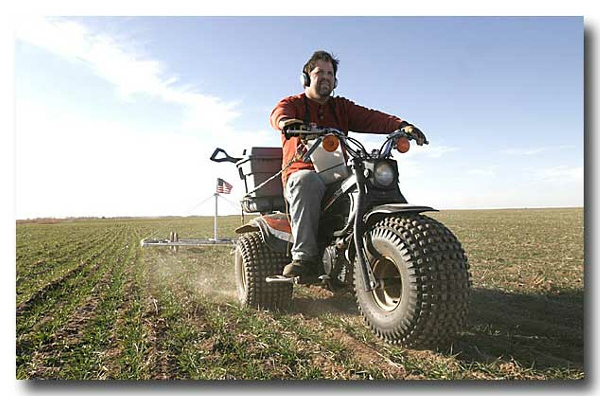 “Mēs satikāmies Alena Binforda rudzu laukā, kur Stīvs (Arnolds) kabināja savam traktoram aizmugurē speciālu ierīci metāla daļu meklēšanai. Man iedeva lāpstu un portatīvo metāla detektoru, tad sāka lēni braukt un lika man sekot traktoram. Un ik pēc laika komandēja – roc te!, roc šeit!, roc te!, un es raku... Visa diena pagāja braucot un rokot un pētot atrakto, bet guvums bija sarūsējuši zirgu pakavi, metāla instrumentu daļas, metāla žoga gabali, vai stieples. Nākošajā dienā mums pievienojās Stīva paziņa ar ekskavatoru, kas palīdzēja atrakt dziļākos, vakar atzīmētos objektus. Viņš raka bedres, mēs sekojām ar lāpstām un rokas detektoriem, pārbaudījām bedres un izraktās zemes kaudzes.