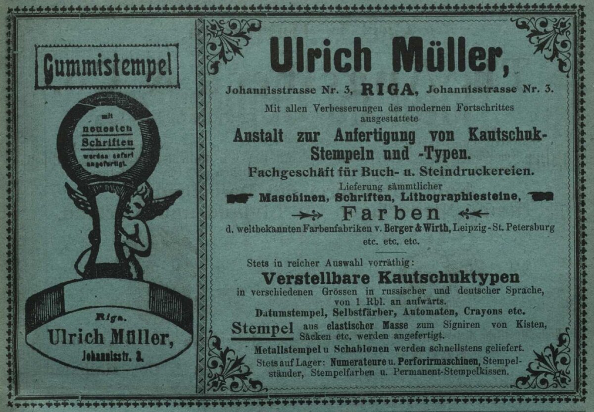 Ulrich Muller. (1901). Ulrich Muller [Reklāma]. Rigasches Adressbuch, 47.