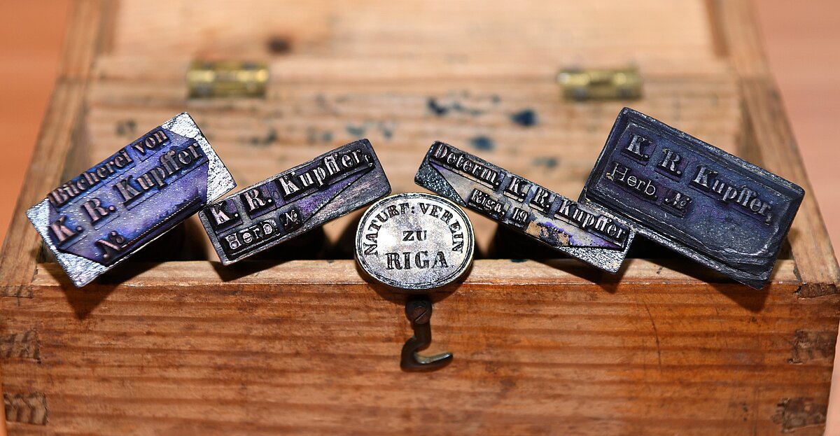 2022. gada martā par godu slavenā vācbaltu botāniķa (un te tikai) Karla Reinholda Kupfera (1872-1935) 150 gadu jubilejai Latvijas Universitātes Muzeja Botānikas un mikoloģijas kolekcijās ieplānotas vairākas aktivitātes. Pirmā no tām - raksts muzeja ilggadējā rubrikā “Mēneša priekšmets”. Krājumā glabājas K. R. Kupfera ievāktais Baltijas herbārijs (Herbarium Balticum; ap 30 000 herbārija lapu) un plaša viņa mantojuma apakškolekcija, kurā atrodamas viņa publikācijas, daļa no privātbibliotēkas, fotogrāfijas, piezīmes, personīgie dokumenti, korespondence u.c. priekšmeti. Šoreiz tuvāk apskatīsim spiedogus, ko K. R. Kupfers izmantojis savās darba gaitās.
