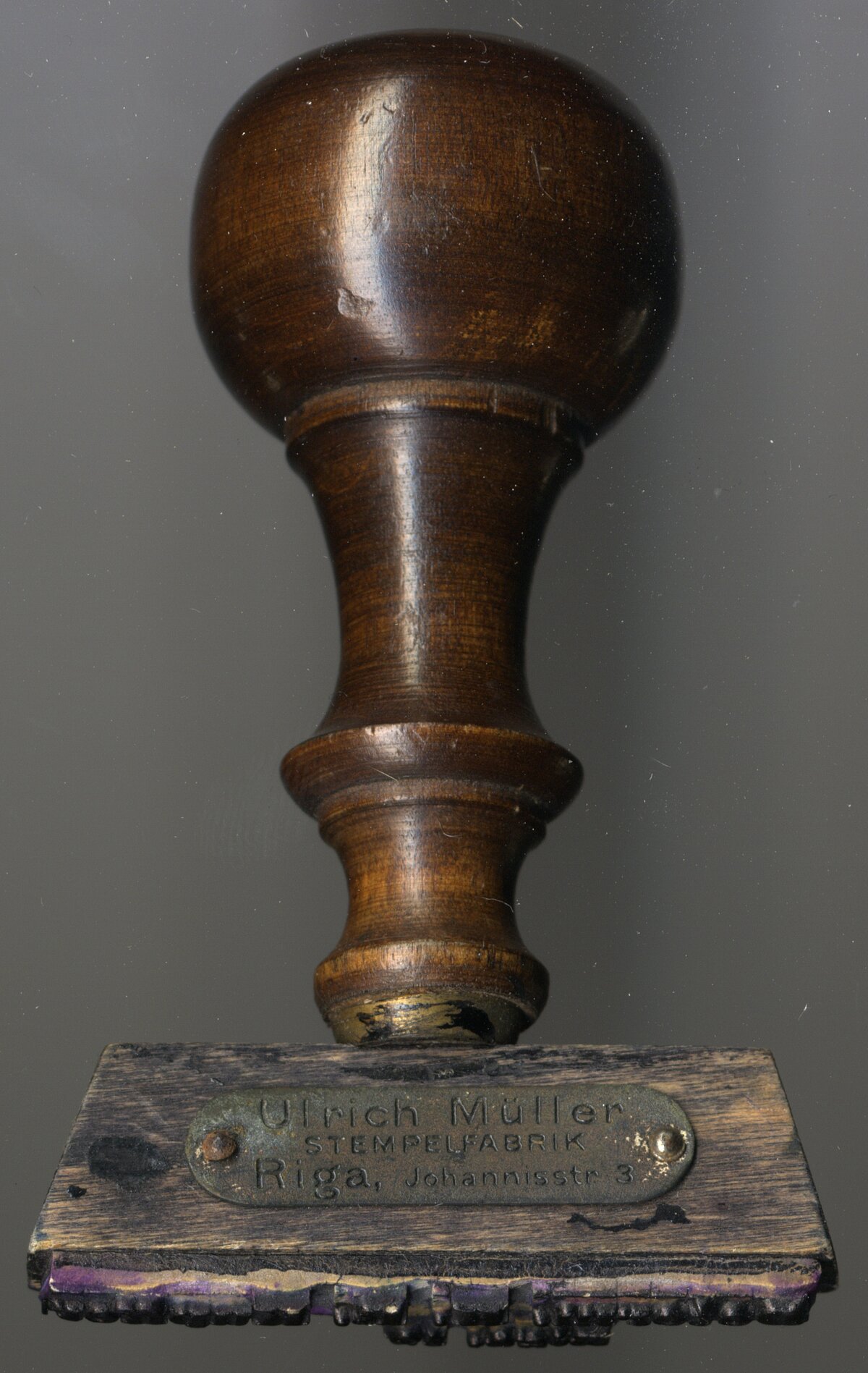 3 no spiedogiem ir ražoti Rīgā, Ulriha Millera zīmogu rūpnīcā (Ulrich Müller Stempelfabrik), kas atradās Jāņa ielā 3 (Johannisstrasse 3). Par šo rūpnīcu vai tās īpašnieku atrodams gaužām maz informācijas. Tā minēta laikrakstos “Daugavas Avīze” (Düna Zeitung), “Rīgas Avīze” (Rigasche Zeitung), “Rīgas Pārskats” (Rigasche Rundschau) un “Rīgas Jaunākās Ziņas” (Rigasche Neueste Nachrichten) laika periodā no 1905. līdz 1913. gadam un rūpnīcas reklāma ievietota adrešu grāmatas “Rigasches Adressbuch” 1901. gada izdevumā. Reklāmā rakstīts - aprīkots ar visiem mūsdienu progresa uzlabojumiem gumijas zīmogu un tipu ražošanas uzņēmums, grāmatu un akmens iespiedēju specializētais veikals. Visam iespējams pasūtīt piegādi, noliktavā vienmēr bagātīga izvēle. Pieejamas krāsas no pasaulē pazīstamās krāsu rūpnīcas Berger & Wirth Leipcigā un Sanktpēterburgā. Pieejami regulējami dažādu izmēru gumijas burti krievu un vācu valodā, cena sākot ar 1 rubli. Pieejami datuma zīmogi, pašizkrāsošanas iekārtas, mašīnas, krītiņi, numurētāji, perforēšanas iekārtas, zīmogu statīvi, zīmogu krāsas, pastāvīgie tintes spilventiņi, tiek izgatavoti gumijas zīmogi kastu, maisu u.c. marķēšanai. Metāla zīmogi un šabloni tiks piegādāti pēc iespējas ātrāk (Ulrich Muller, 1901).