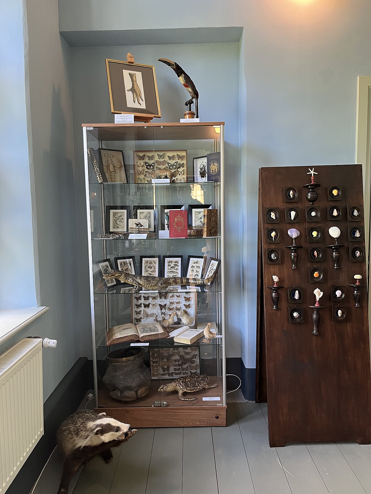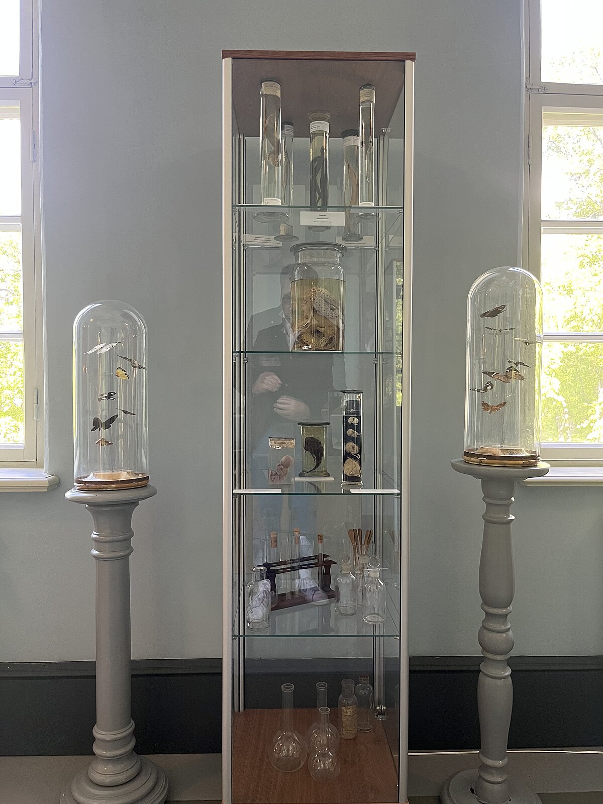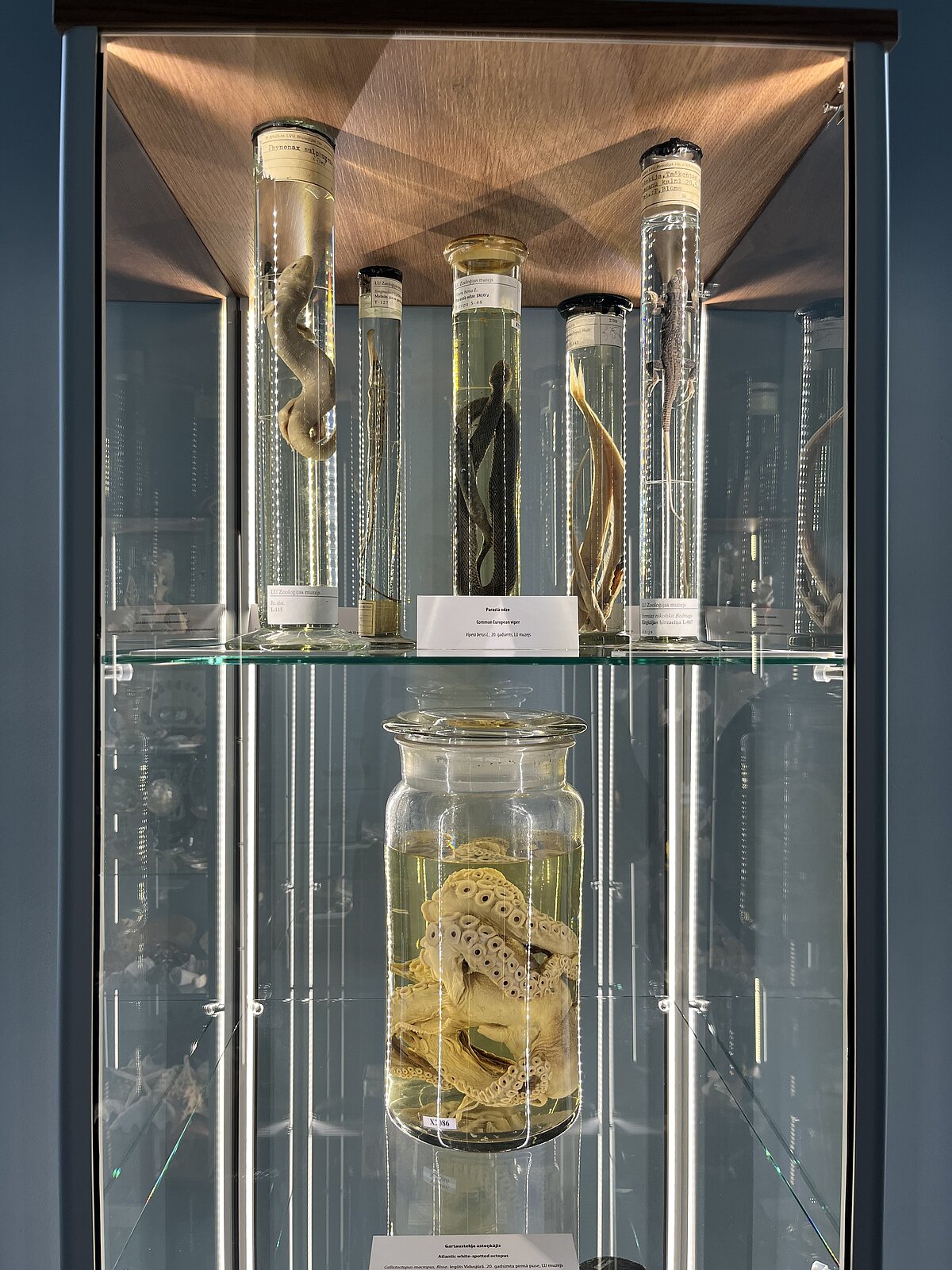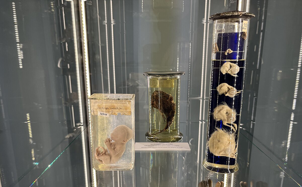 Šajā, no daudzu muzeju un privātkolekciju krājumiem veidotajā izstādē “Retumu kabineti. Kaislība Eiropā. 16.-21. gs.” savākti kopā eksponāti, kam ir šāda sena izcelsme vai kas izgatavoti attiecīgā laikmeta stilā. Latvijas Universitātes (LU) Muzejs gan ir krietni jaunāks, bet tas laika gaitā savās kolekcijās iekļāvis arī senlaicīgus un senus paraugus, tāpēc varēja piedalīties un dot savu artavu izstādes krāšņumam un daudzveidībai. No LU Muzeja Zooloģijas kolekcijām izstādē tiek eksponēti 13 dzīvnieku izbāzeņi un preparāti. Tās, pirmkārt, ir konservējošā šķīdumā saglabātas zivis - Islandes lentzivs, Melnās jūras gardeguna adatzivs, kā arī Jūras dzeloņgalve jeb zilais jūrasbullis, kas vienu reizi, 1928. g., esot noķerta pie Liepājas. Rāpuļus pārstāv parastā odze un divas ķirzakas no Vidusāzijas, viena no tām – Kirgīzijas jeb Nikoļska ķirzaciņa. No gliemjiem skatāms Vidusjūras gartaustekļu astoņkājis. Interesanti, ka dabā šis dzīvnieks gan pastāvīgi maina krāsu, bet visbiežāk ir koši sarkans ar sīkiem baltiem plankumiņiem. Citā preparātā redzamas mājas vistas embrija attīstības piecas stadijas. Eksponēts arī šaurdeguna pērtiķa embrija (augļa) preparāts.