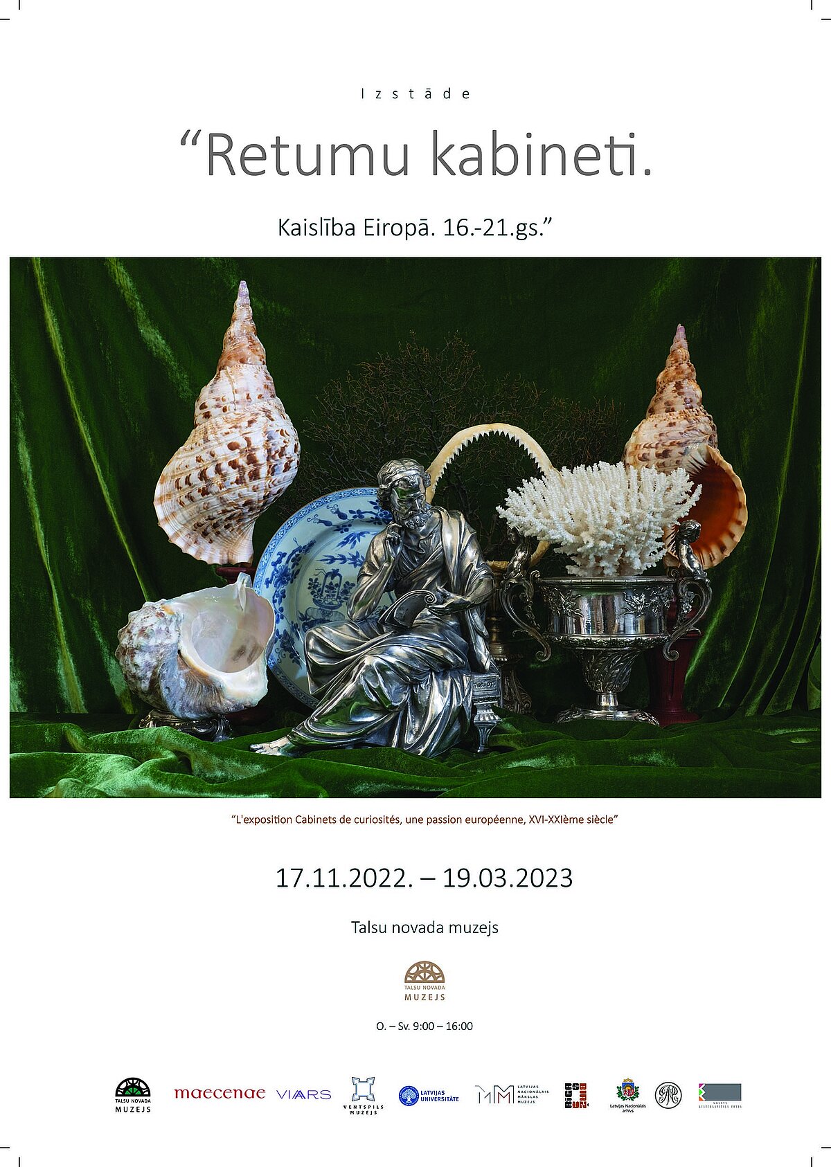 Talsu novada muzeja telpās eksponēti vairāki simti dabas izcelsmes un mākslas priekšmeti no Latvijas muzeju un mantojuma institūciju, kā arī franču privātkolekcijām. Izstādes apmeklētāji tiks iepazīstināti ar to, cik lielā mērā retumu kabinetu koncepcija turpina iedvesmot mūsdienu māksliniekus un kolekcionārus.