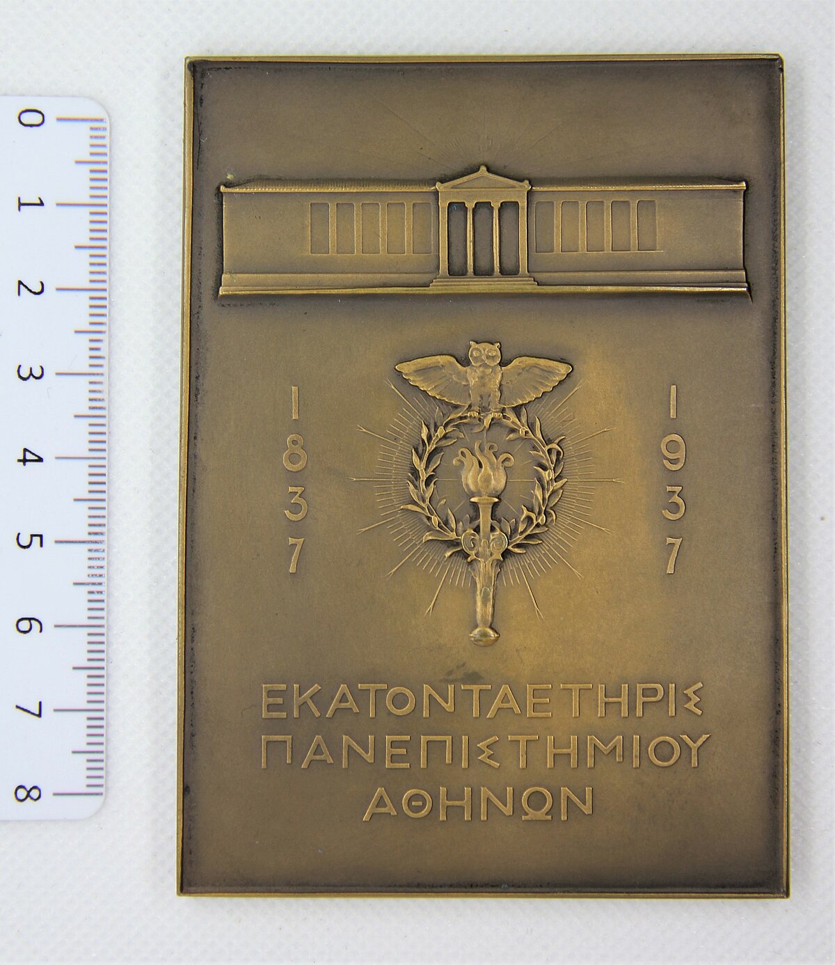 Atēnu Universitātes simtgades medaļa ir unikāla sava laika liecība, jo tas ir Latvijā vienīgais eksemplārs. Piemiņas medaļas ir domātas pieminamā notikuma iemūžināšanai, tāpēc arī Atēnu Universitātes ēka ir galvenais vizuālais elements šajā medaļā. Zīmīgi, ka šīs medaļas izgatavošanas gads sakrīt ar gadu, kurā 40 valstu medaļu mākslinieki apvienojās Starptautiskajā mākslas medaļu federācijā (International Art Medal Federation), kas bija pirmā šāda tipa organizācijas pasaulē [10].