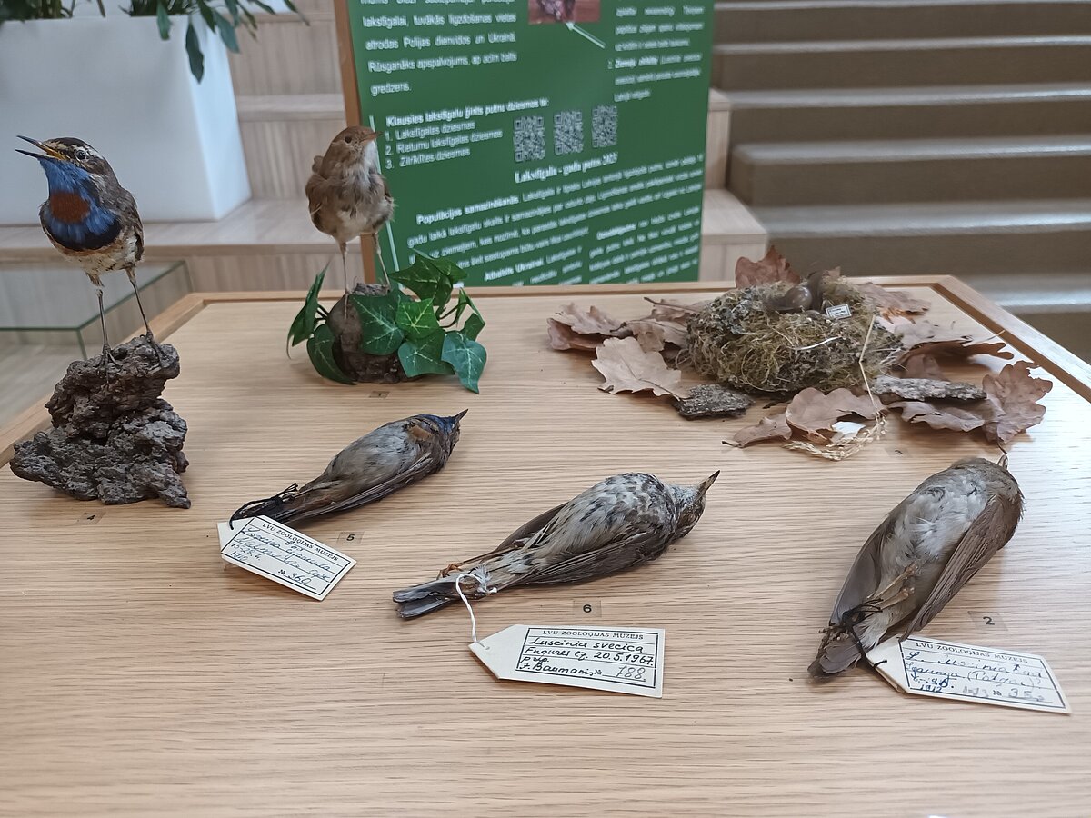 Latvijas Universitātes (LU) Akadēmiskā centra Dabas mājā Torņakalnā, Jelgavas ielā 1, uz lielajām kāpnēm atklāta izstāde, kas veltīta lakstīgalu ģints pārstāvjiem LU Muzeja Zooloģijas kolekcijās, akcentējot lakstīgalas gada putna 2023 statusu.