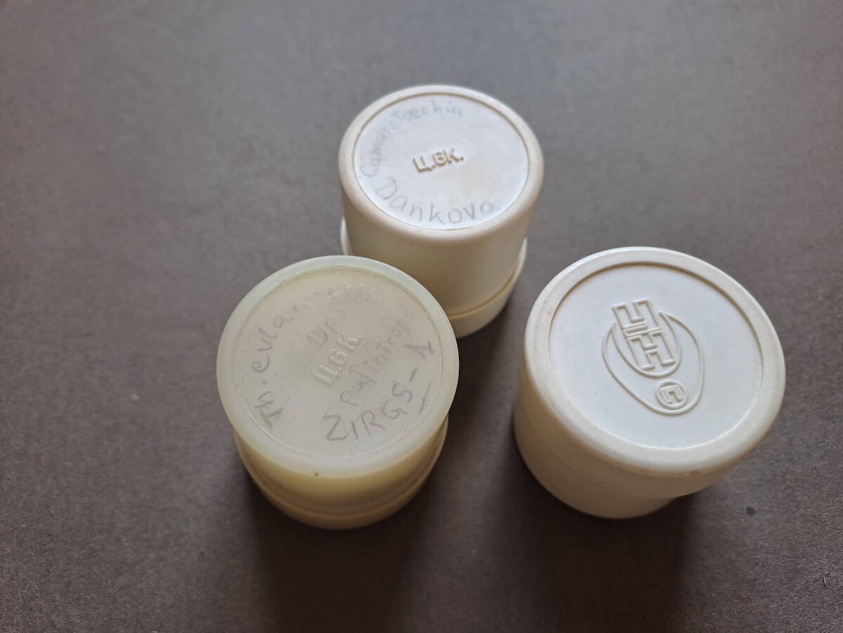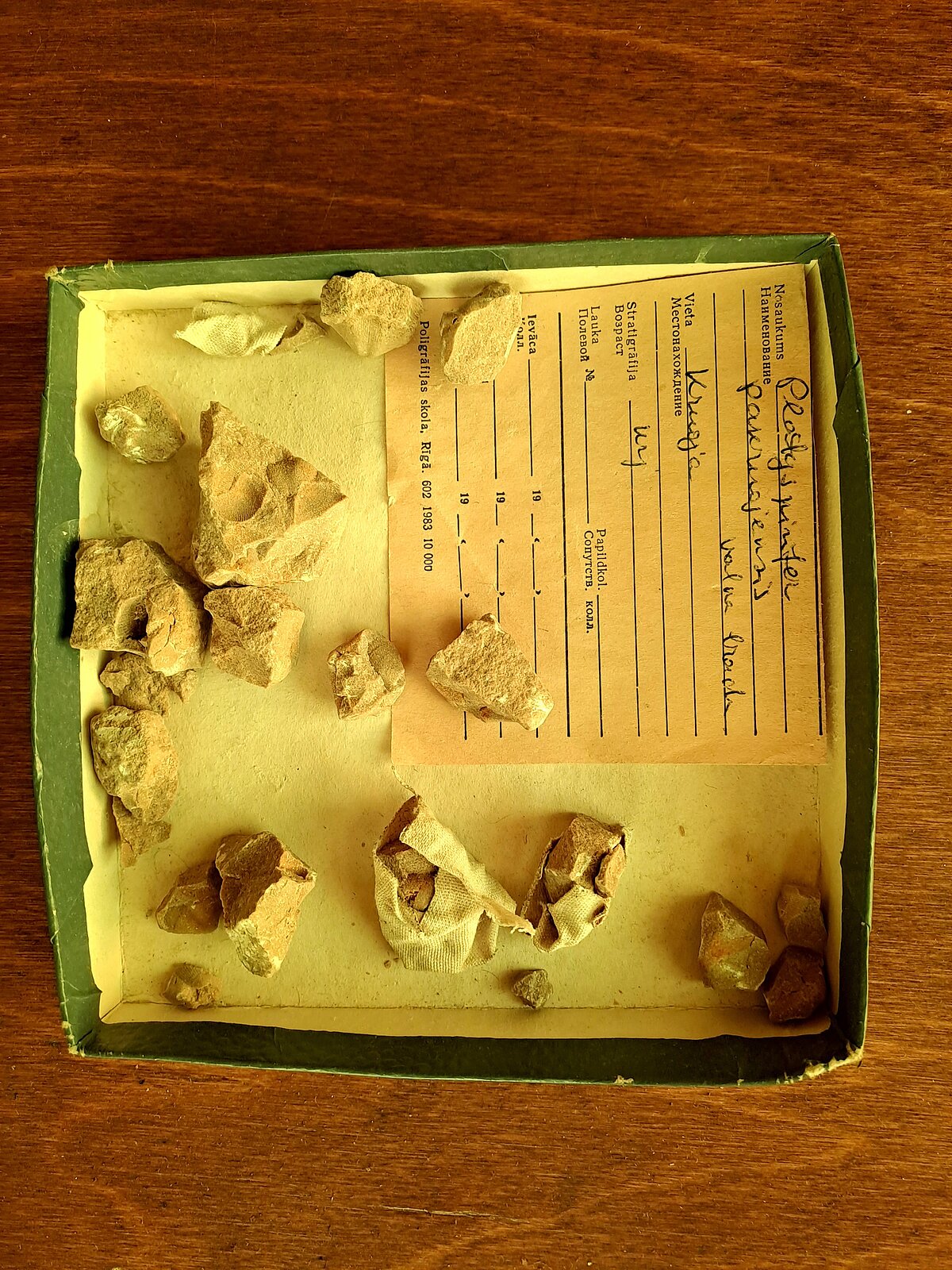 Atvilktnēs atrodami arī liels daudzums mazu kārbiņu, kas izmantotas paleontoloģisko objektu glabāšanai. Uz tām rakstīti ieguves dati, iekšā atrodas dažus gramus smaga fosilija un etiķete ar sīkāku aprakstu. Bieži izmantotas diapozitīvu filmiņu kārbiņas, negatīvo fotofilmiņu papīra iesaiņojumi, sērkociņu kastītes.