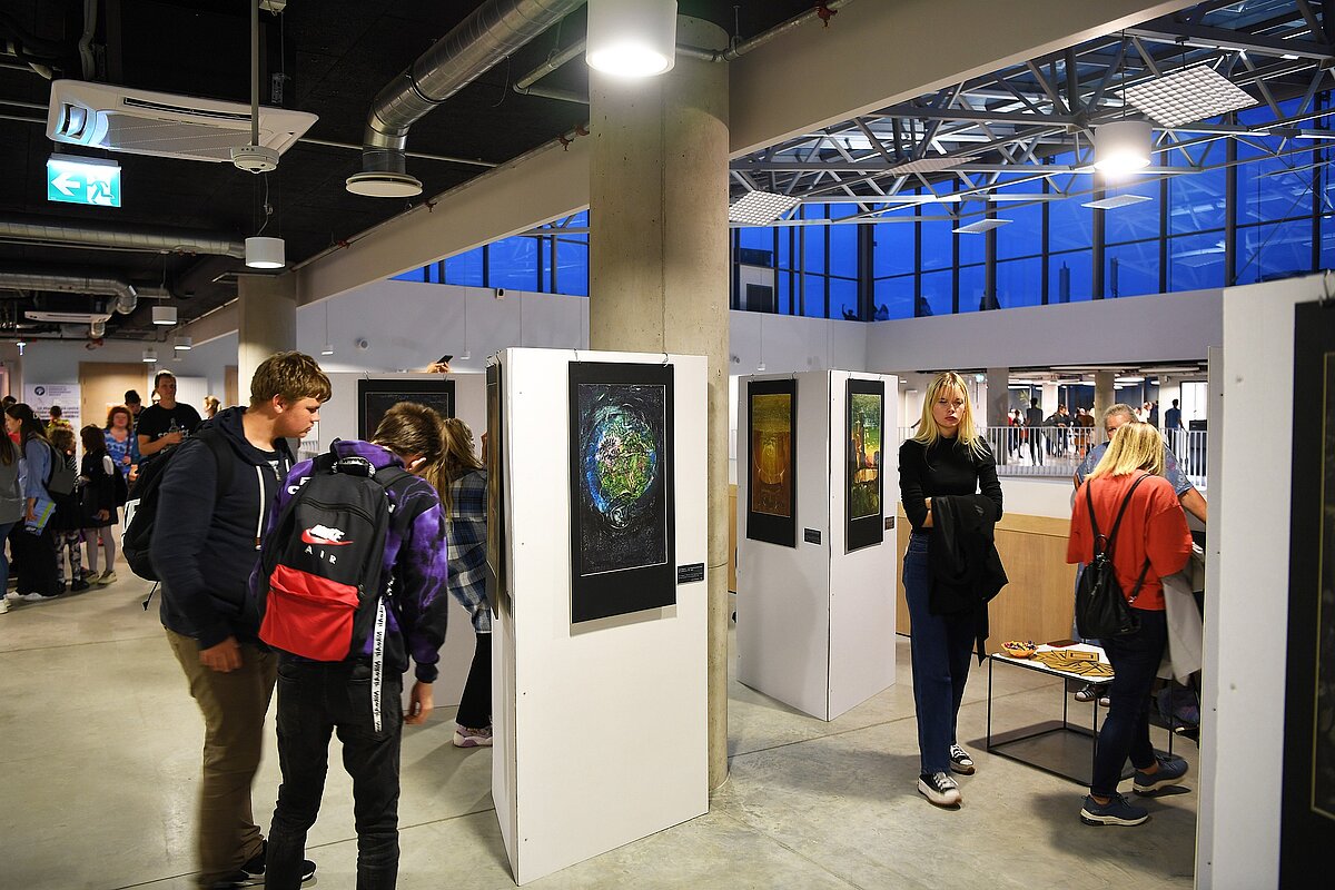 Latvijas Universitātes (LU) Akadēmiskā centra Zinātņu mājas 7. stāvā Jelgavas ielā 3, Rīgā apskatāma mākslinieka Jura Zvirbuļa akvareļu cikla “Sapnis par lidojumu” izstāde.