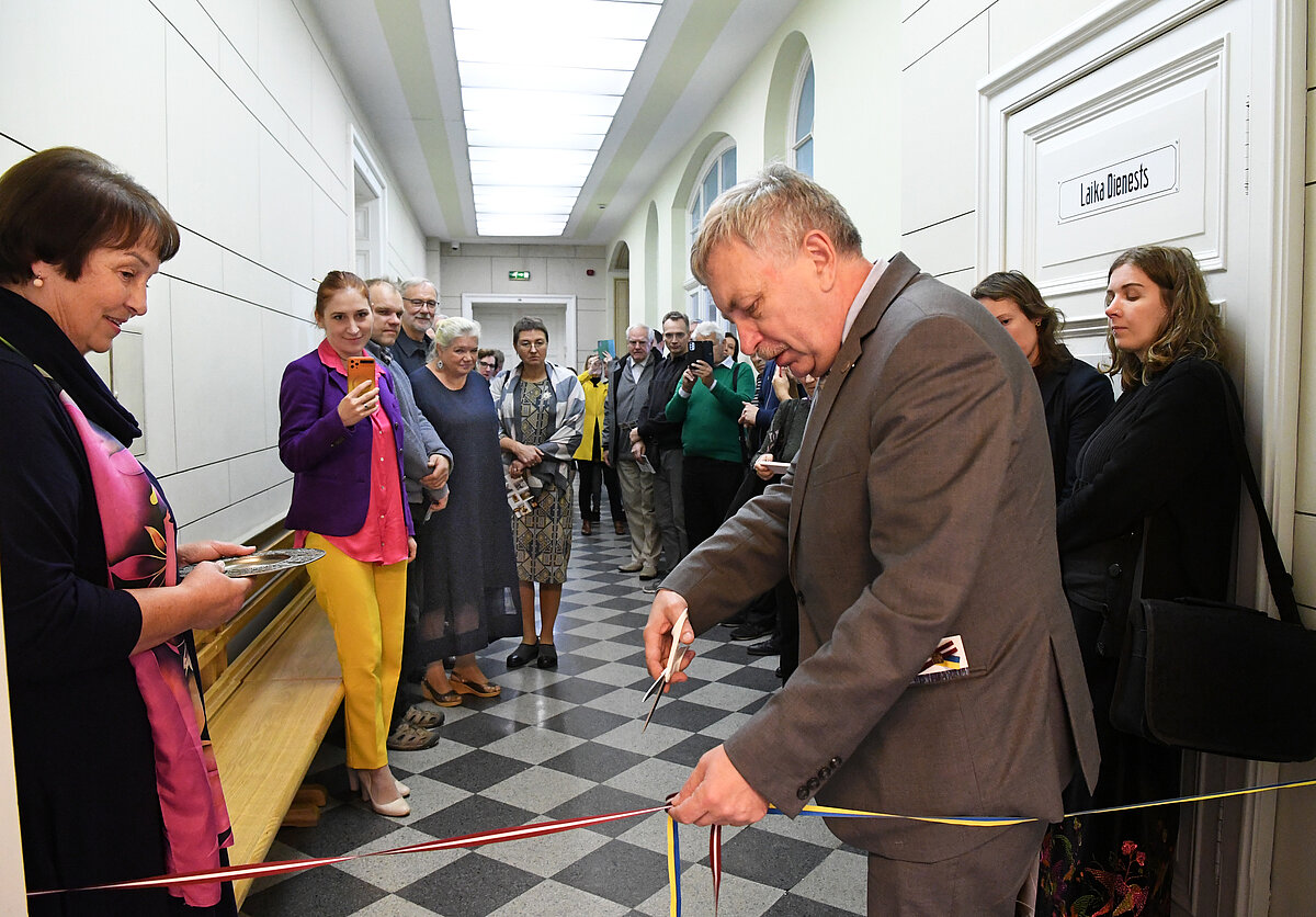 Atklāšanas notikumu svinīgi ievadīja LU rektora Indriķa Muižnieka uzruna un svētku lentas pārgriešana, kas apvienoja abu valstu karogu krāsas. Sanākušie pulcējās ekspozīcijas telpā, kuras centrālais mākslinieciski simboliskais elements ir ukraiņu mākslinieces Marijas Zeņkovas murālis.