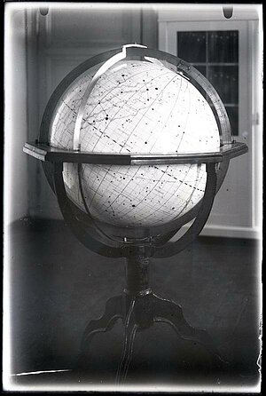 Zvaigžņu globuss astronomiskās observatorijas telpās 20. gs. 30. gados, attēls no LU Muzeja krājuma