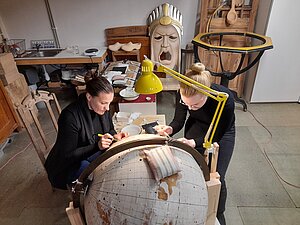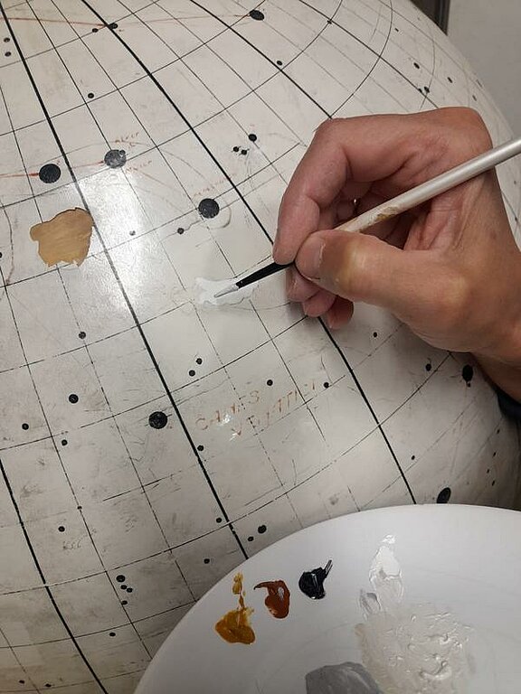 Studentes darbā pie zvaigžņu globusa restaurācijas