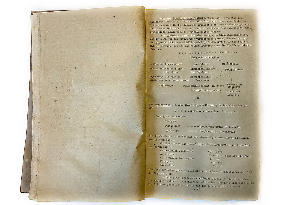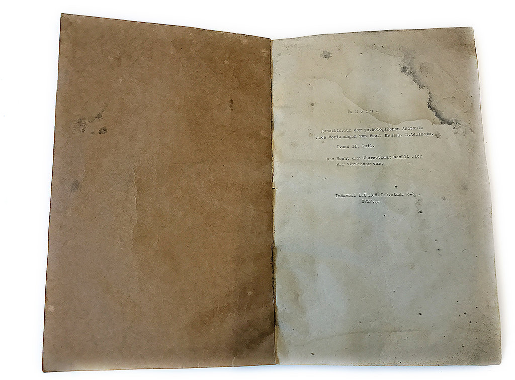 Grāmata tika atrasta 2018.g., veicot kapitālo remontu Gaiļezera slimnīcas Patoloģijas nodaļā. No vēsturiskiem datiem ir zināms, ka profesors Romans Adelheims 1929.gadā vadīja Patoloģiskās anatomijas katedru, bet viņa vadīto Pastēra staciju no Rīgas 1. pilsētas slimnīcas mācību bāzes pārcēla uz 2. pilsētas slimnīcas prozektūras bāzi (tagadējā P. Stradiņa slimnīca), kur katedra darbojās līdz 1981.gadam.