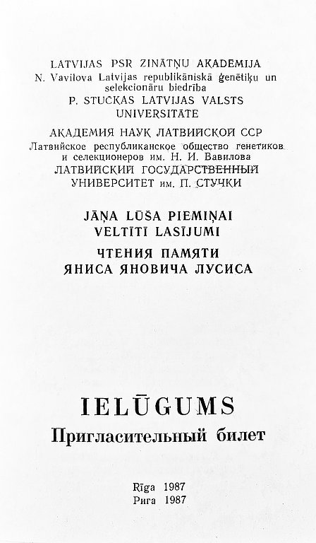 Pārskatot dokumentu arhīvu, tika atrasts 1987. gada “Ielūgums” uz Jāņa Lūša piemiņai veltītajiem lasījumiem Latvijas Universitātē. Profesors Lūsis bija un arī paliek viens no nozīmīgākajiem 20. gadsimta zinātniekiem, kas atstājis savas pēdas Latvijas zinātnes vēsturē.